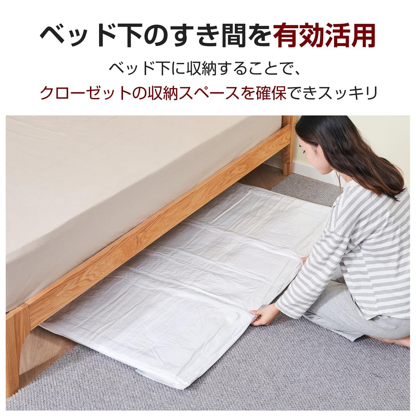 【75%のスペースを節約】 シングル、ダブルサイズのマットレス、ラテックスマットレス、布団、枕や大きめの衣類などを簡単に圧縮できて収納でき、最大75%の収納スペースを省くことができます。立てて収納もでき、狭い収納スペースを有効活用できる圧縮袋です。