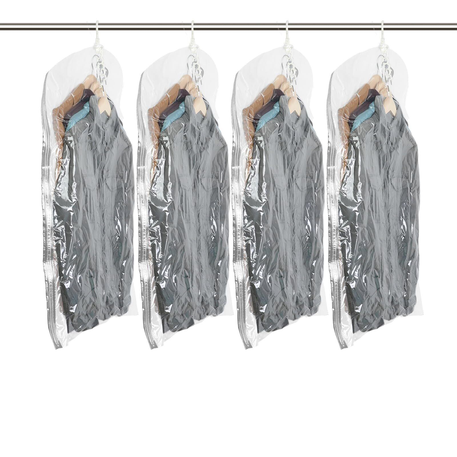 TAILI 圧縮袋 吊るせる 衣類圧縮袋 4枚入 吊り下げ 洋服収納 真空バッグ 着物収納 コート ジャケット スーツ用 大容量 360度回転 掃除機対応 省スペース 引越し 衣替え 旅行用 取り付け簡単 繰り返し利用可能 105 x 70cm 透明