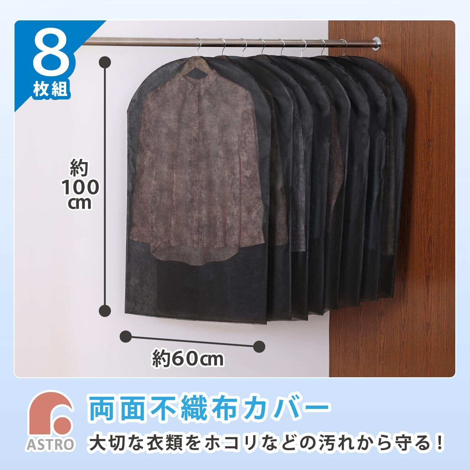 アストロ 衣類カバー ブラック ショートサイズ 60×100cm 8枚組 洋服カバー スーツカバー 衣装カバー 収納カバー 通気性の良い不織布製 下部開き仕様 埃除け ジャケット 礼服 喪服 冠婚葬祭 クリーニング後の衣類の保管に 防塵 カット可能 605-14