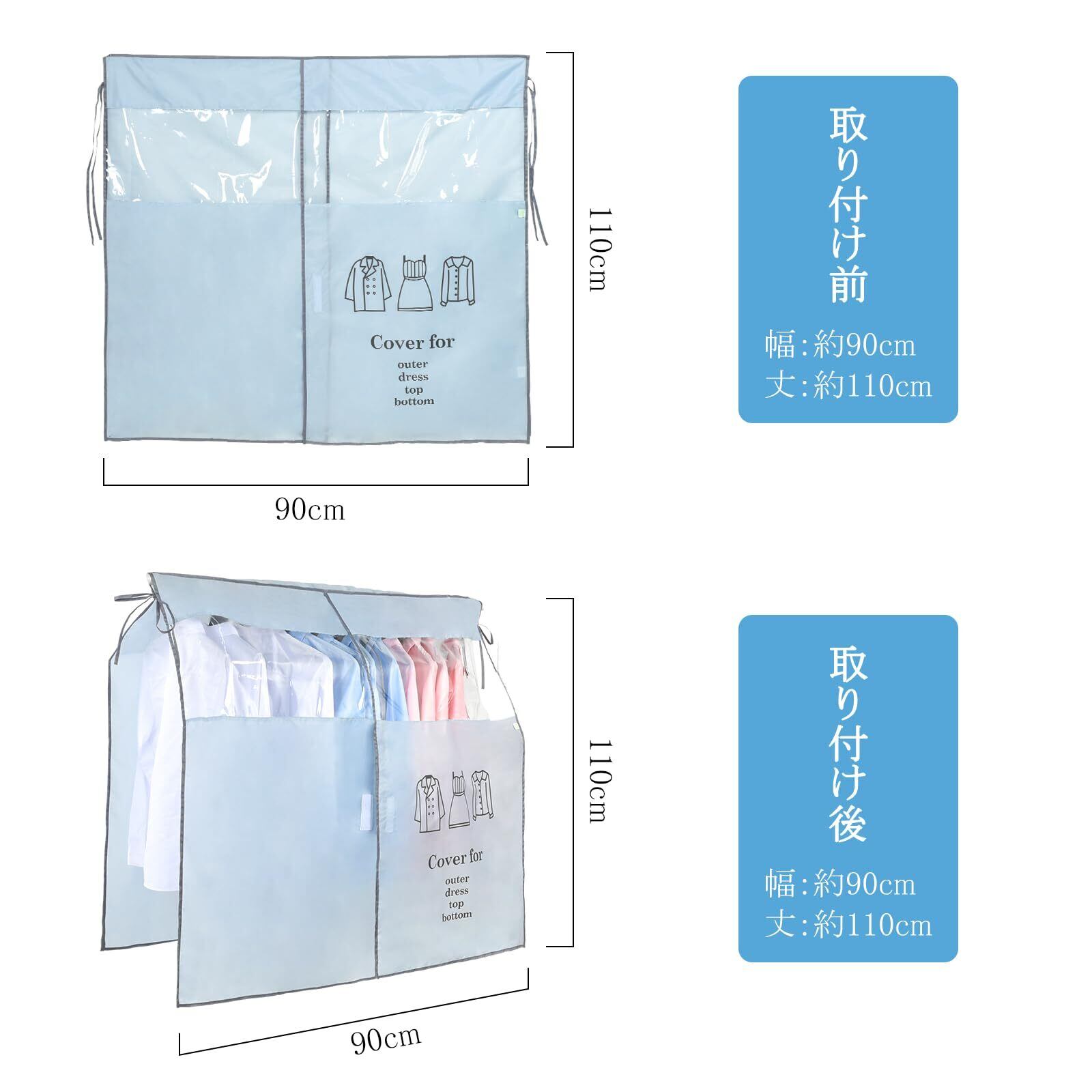 【仕様】サイズ:幅90cm高さ110cm。ハンガーラックをすっかりカバーできるので、ベッドルーム、ベランダ、洋服ラックなど場所には使用できます