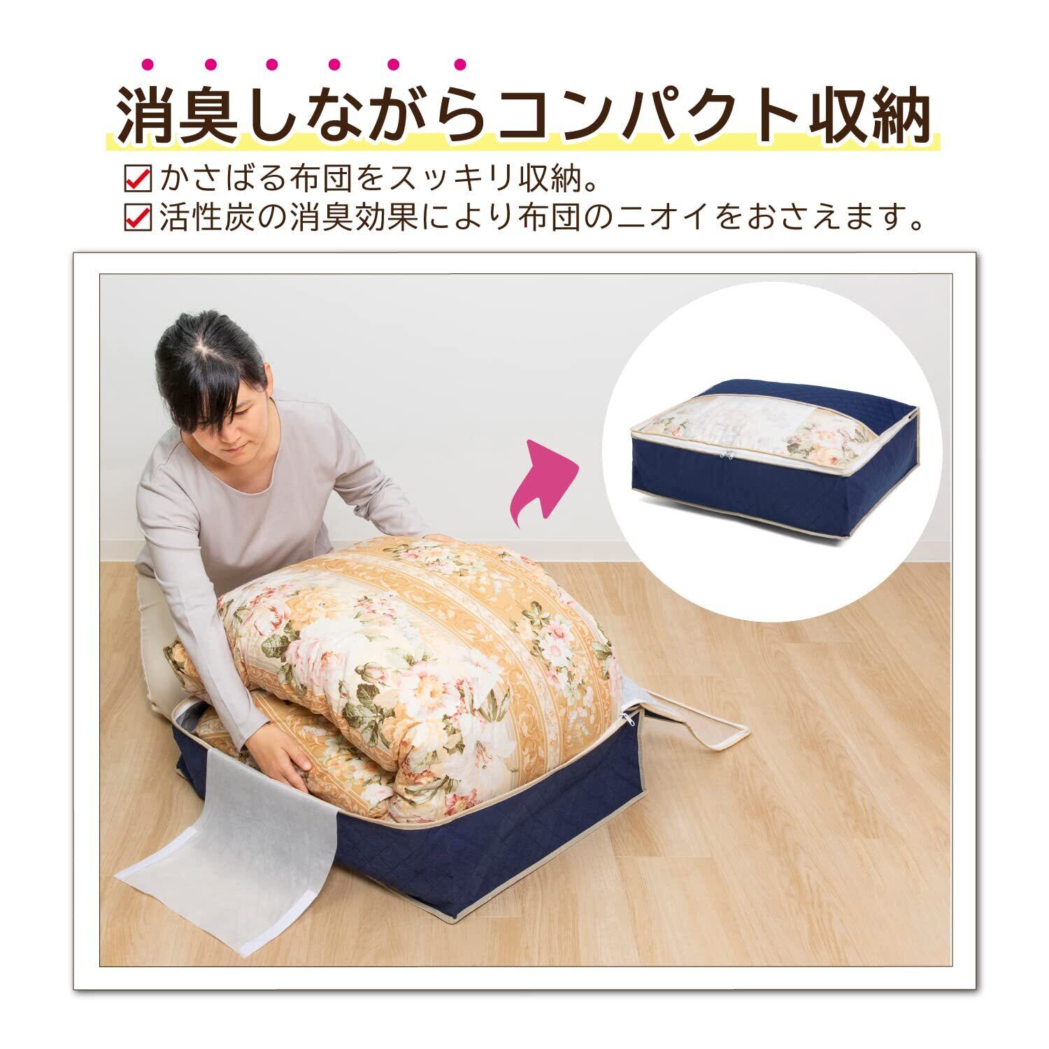 【商品仕様】:サイズ/約幅70×奥行55×高さ20cm、カラー/ネイビー、内容/1個、収納目安/ダブルサイズの羽毛布団1枚、材質/ポリプロピレン・活性炭・ポリエチレン
