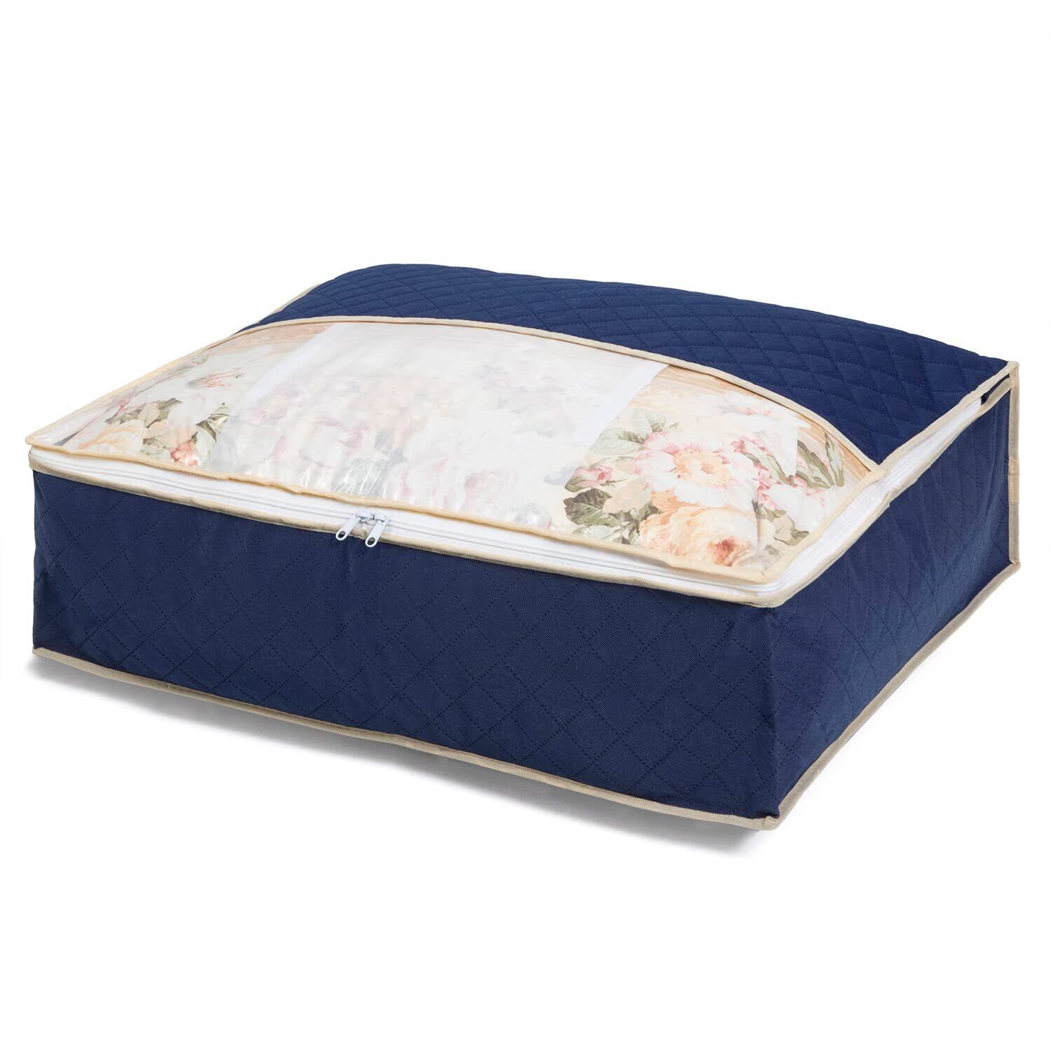アストロ 活性炭消臭 羽毛布団収納袋 ダブルサイズ用 ネイビー 活性炭で消臭 通気性の良い不織布製 収納ケース 布団袋 軽圧縮 薄型 コンパクト 圧縮袋 埃除け 617-34