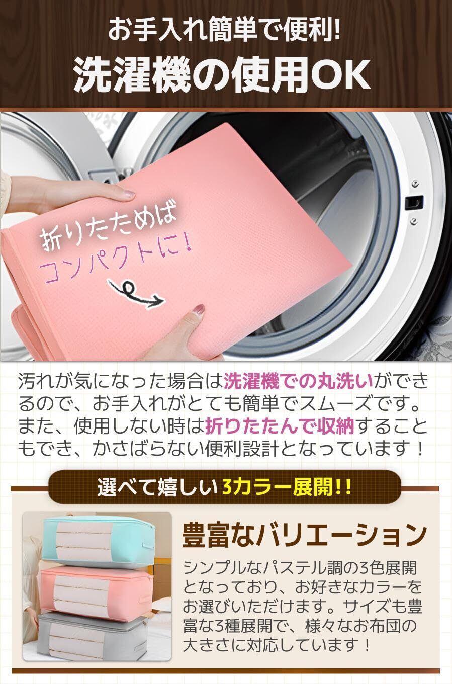 【厚手で丈夫な不織布】抜群の耐久性や耐摩耗性を発揮する高強度の不織布素材となっており、丈夫で長く使用していただけます。通気性にも優れていてニオイやカビ対策にもなり、大切なお布団の収納や保管に最適!