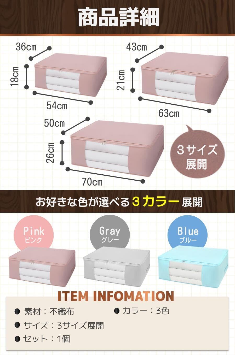 【商品詳細】カラー:3色素材:不織布/サイズ:3サイズ展開/セット:1個/