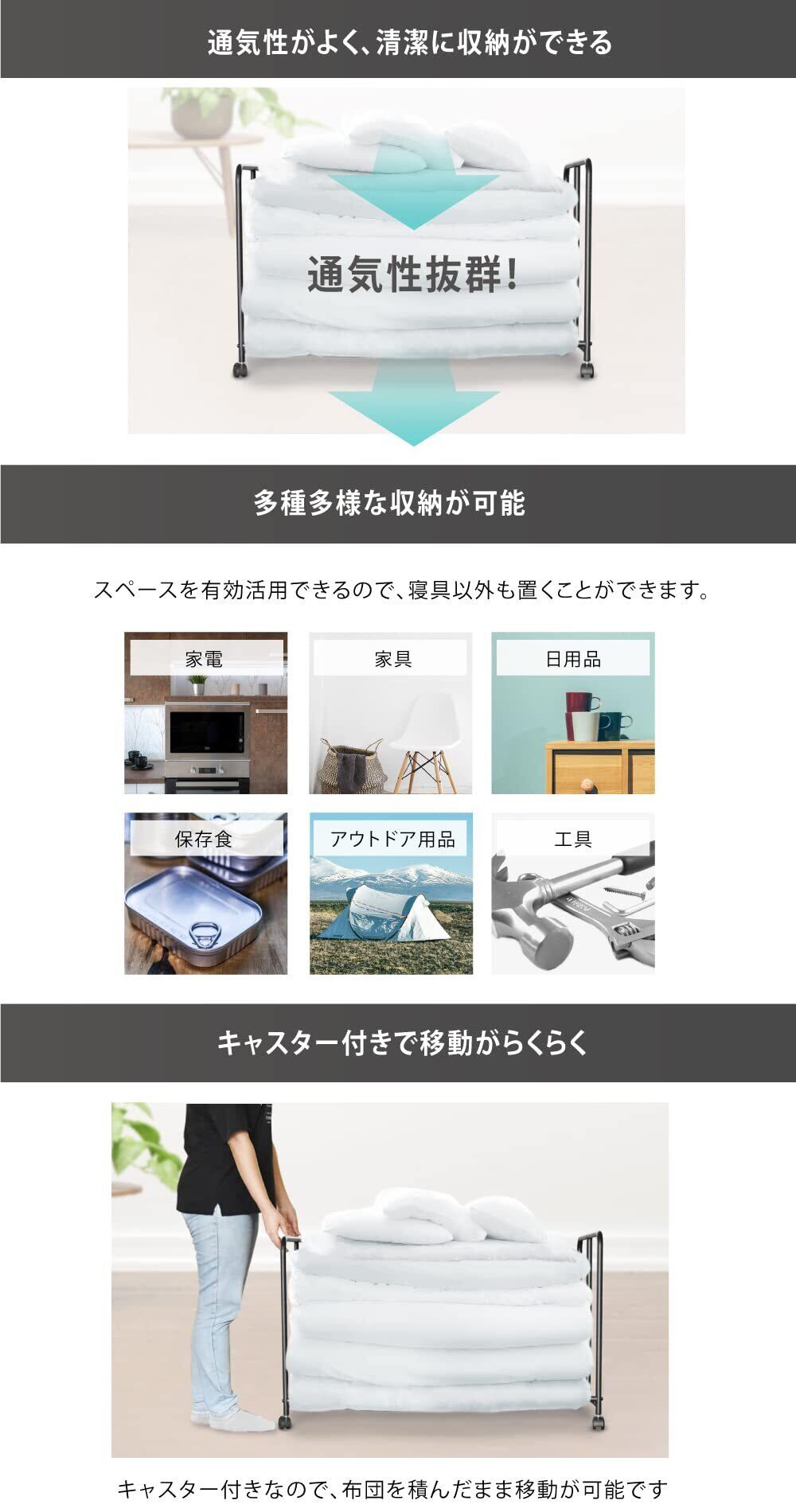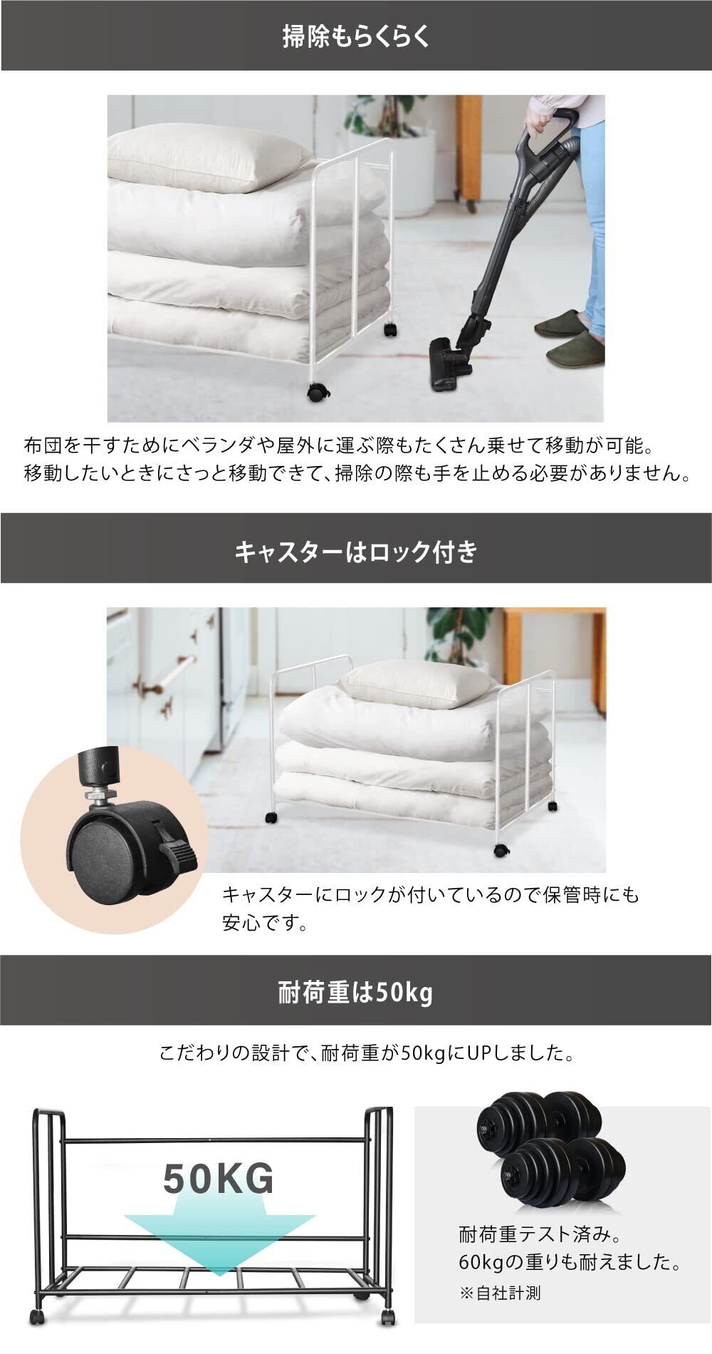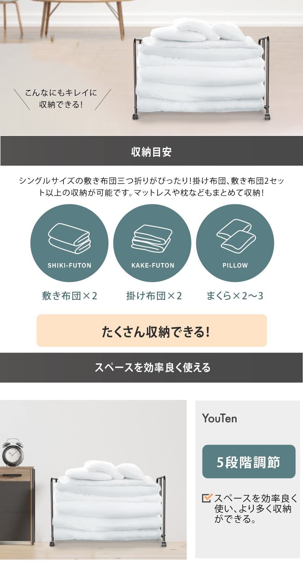 【2022最新】YouTen(ユーテン) 布団ラック ふとん収納 布団 棚 毛布 マットレス 押し入れ収納 ウォークインクローゼット ふとん収納 クローゼット ワゴン 押し入れ収納ラック キャスタ (a. ホワイト)