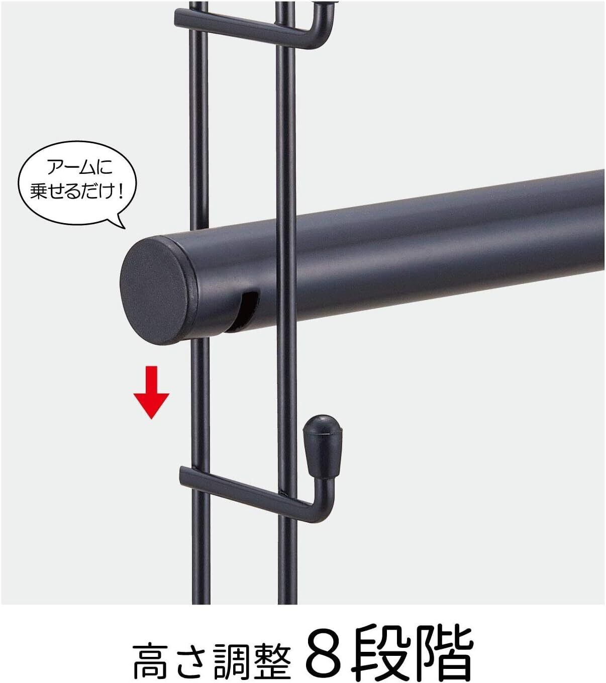 【高さ調整】8段階の高さ調節、アームに乗せるだけの簡単設置。