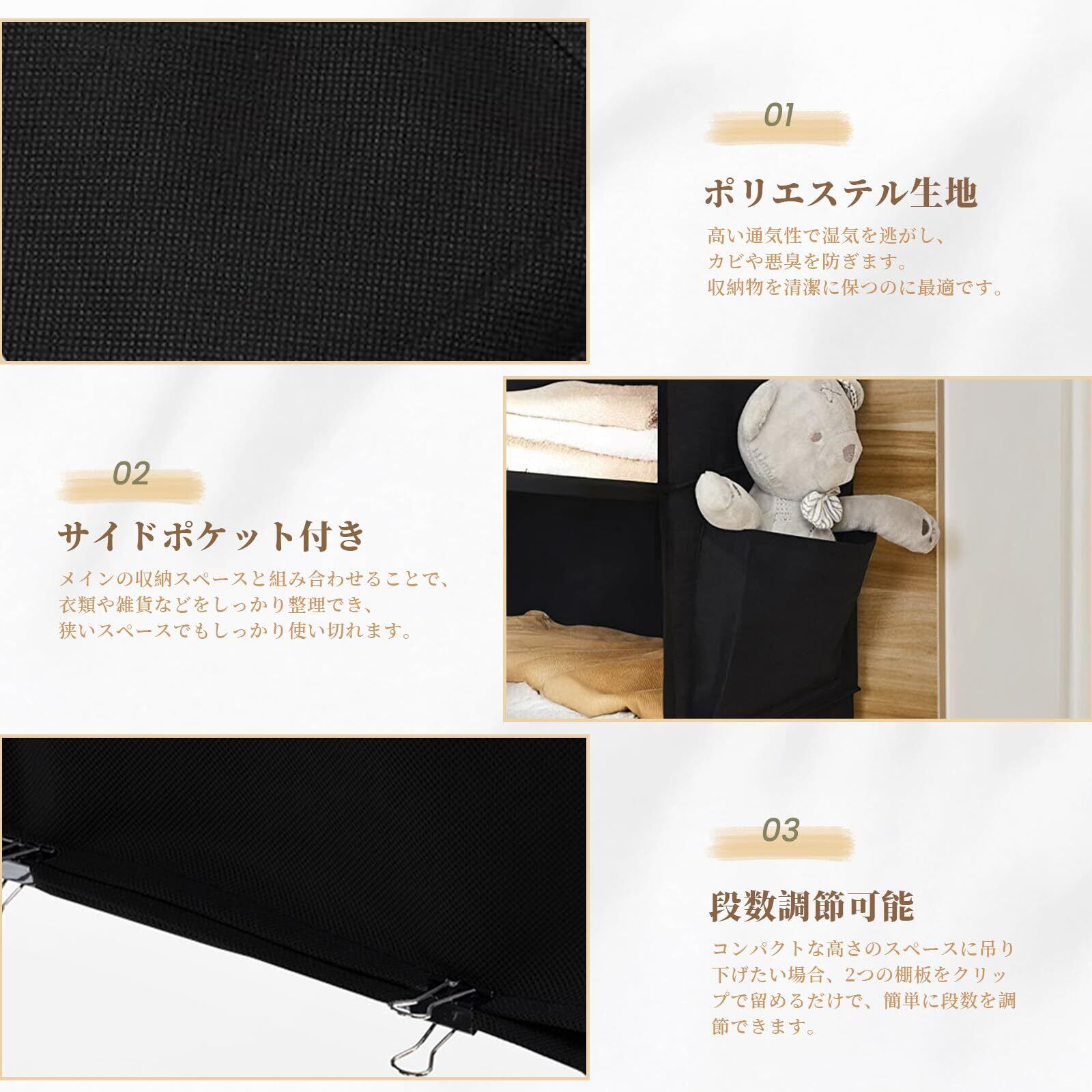 【通気防湿・水洗い可能】耐用性がよいポリエステルを採用して、通気性が良く、防湿性に優れて、水洗いも可能なので衣類の清潔さを保ちます。