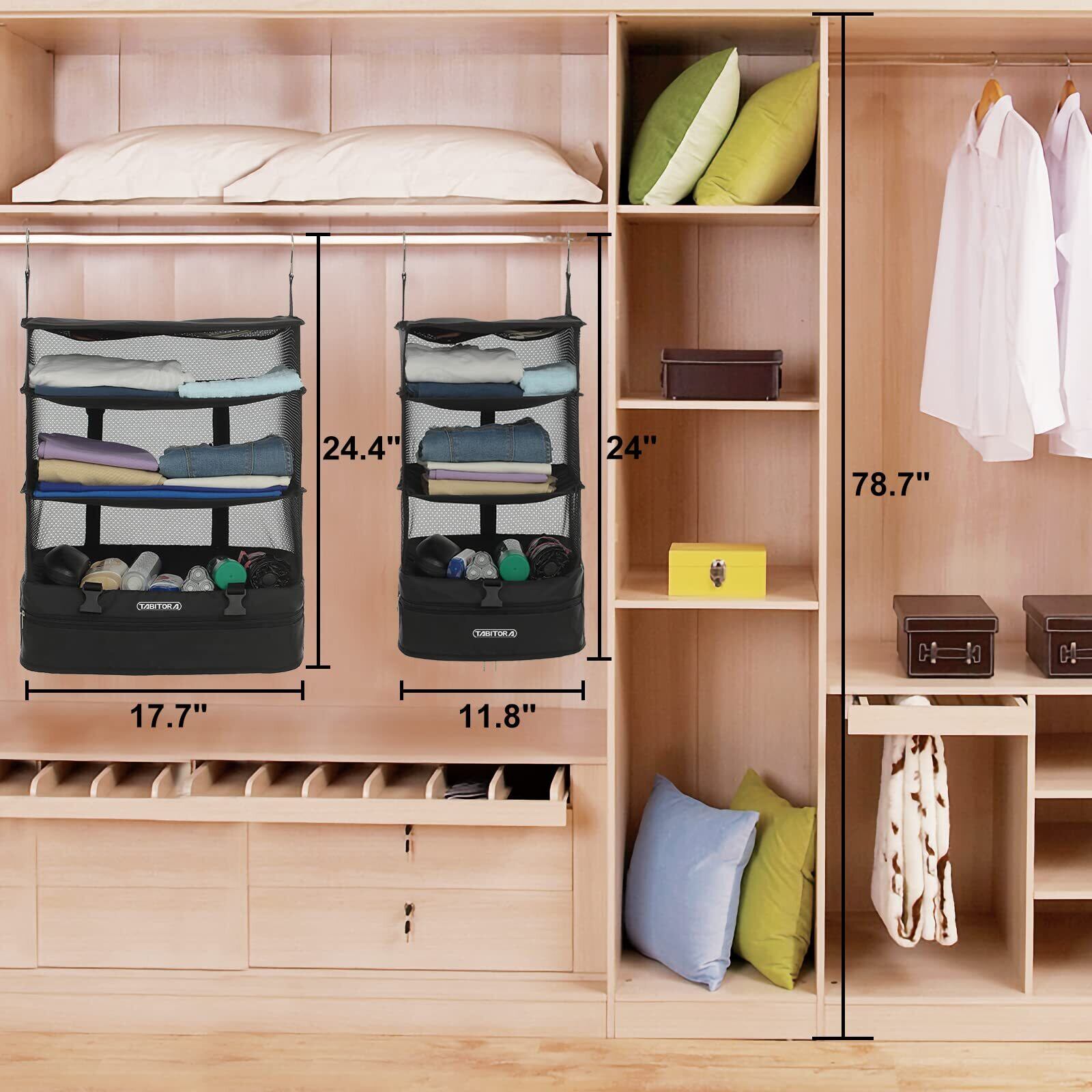 【サイズ】【吊り下げサイズ】 Lサイズ: 11.81×11.81×24インチ。XLサイズ: 17.71×11.81×24.4インチ。【荷物が入った状態でのサイズ】Lサイズ: 11.81×11.81×5.12インチ。XLサイズ: 17.71×11.81×5.12インチ。【使用していないときの畳んだ状態でのサイズ】Lサイズ: 11.81×11.81×1.57インチ。XLサイズ: 17.71×11.81×1.57インチ。