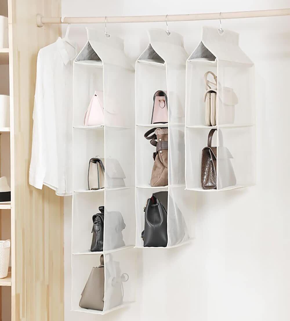 【新着商品】吊り下げ収納 折りたたみ バッグ収納ラック バッグ ハンガー 省スペース 取り付け簡単 防湿 カバン収納 クローゼット 収納 バッグハンガー 4段式 3段式 2段式(4段, ベージュ)