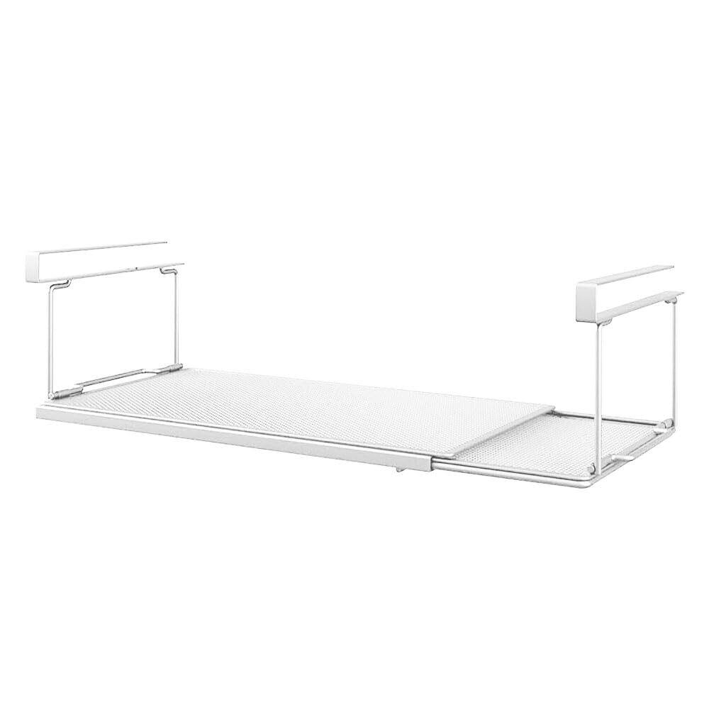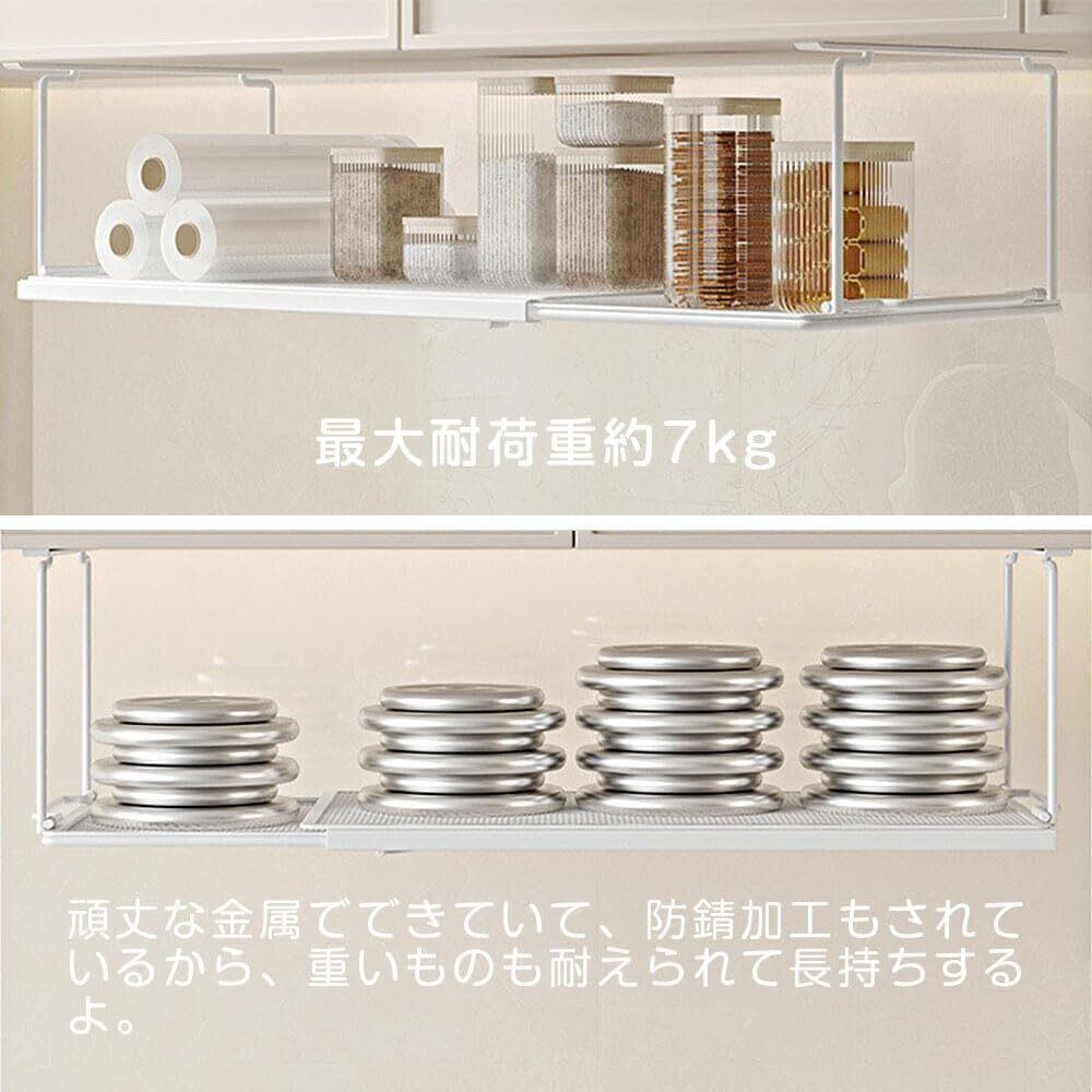 吊り下げ棚 伸縮式戸棚下 掛け式 折り畳み式 伸縮ラック 省スペース 収納ラック 伸縮式 吊戸棚 戸棚下 吊り戸棚 ラップホルダー キッチン収納 吊下げ 伸縮吊戸下はさみ棚 穴あけ不要 (ホワイト)