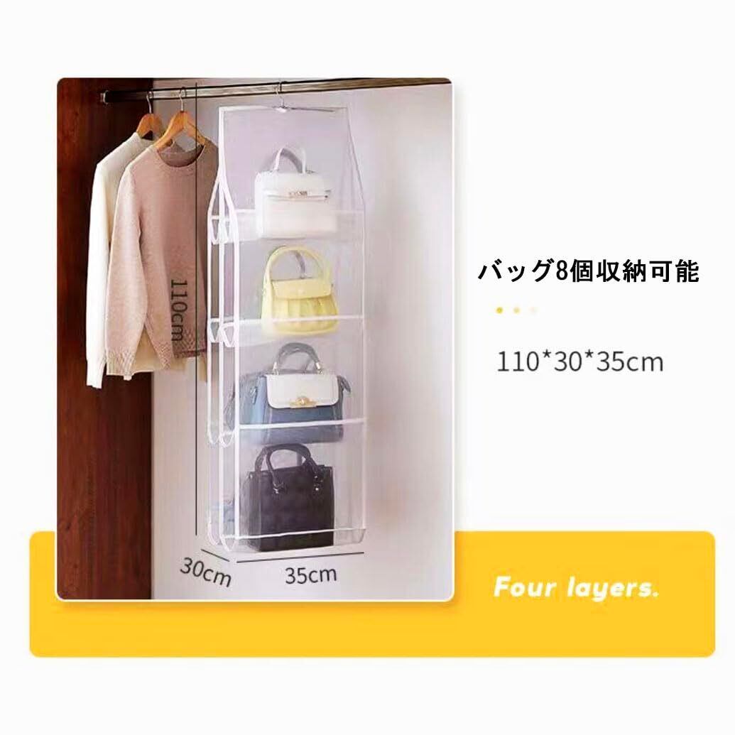 吊り下げ収納 カバン収納 4段式8個収納可能 両面収納 省スペース 取り付け簡単 クローゼット 収納 バッグ収納ラック 省スペース 小物入れ収納ポケット 壁掛け 玄関 キッチン かばん収納 (ホワイト)