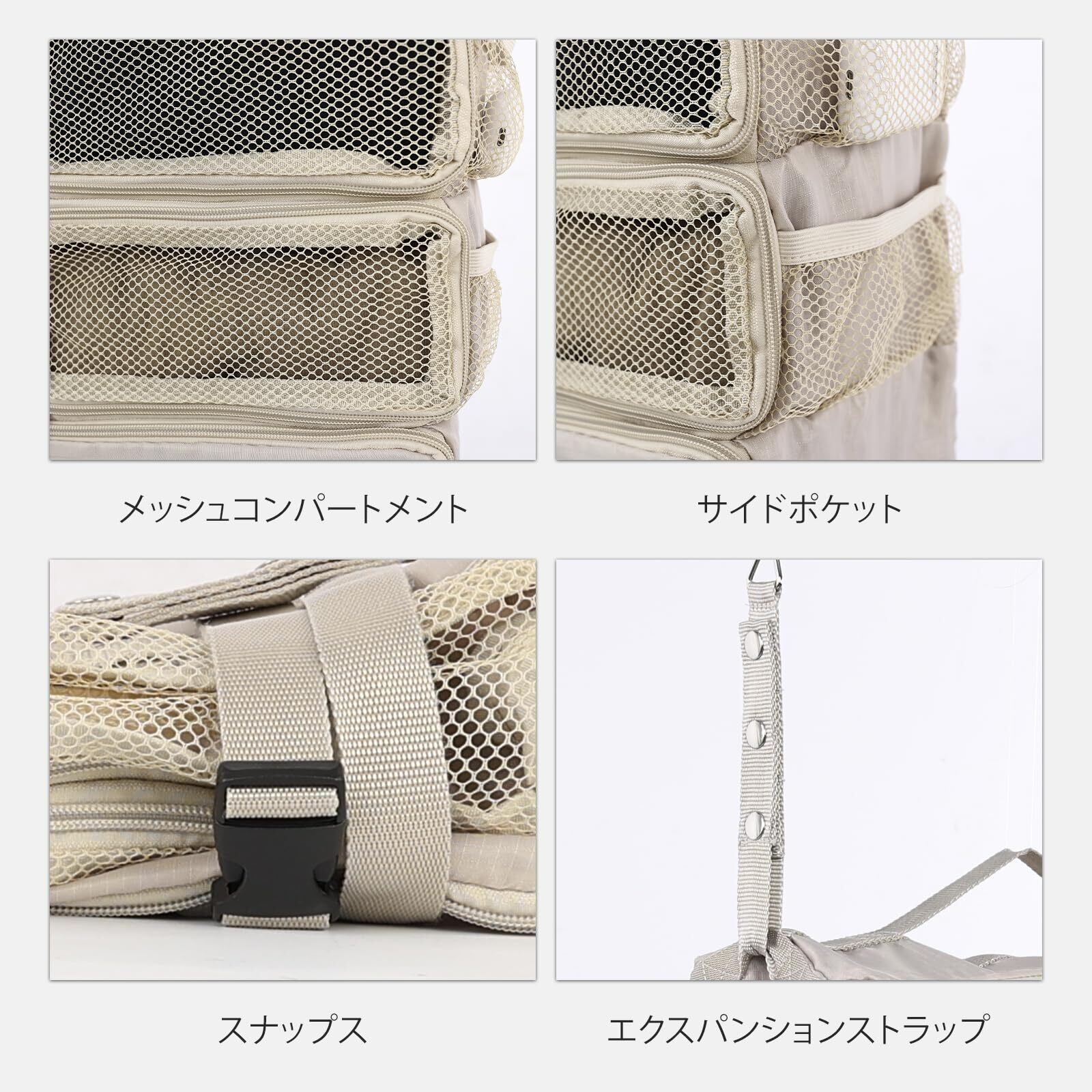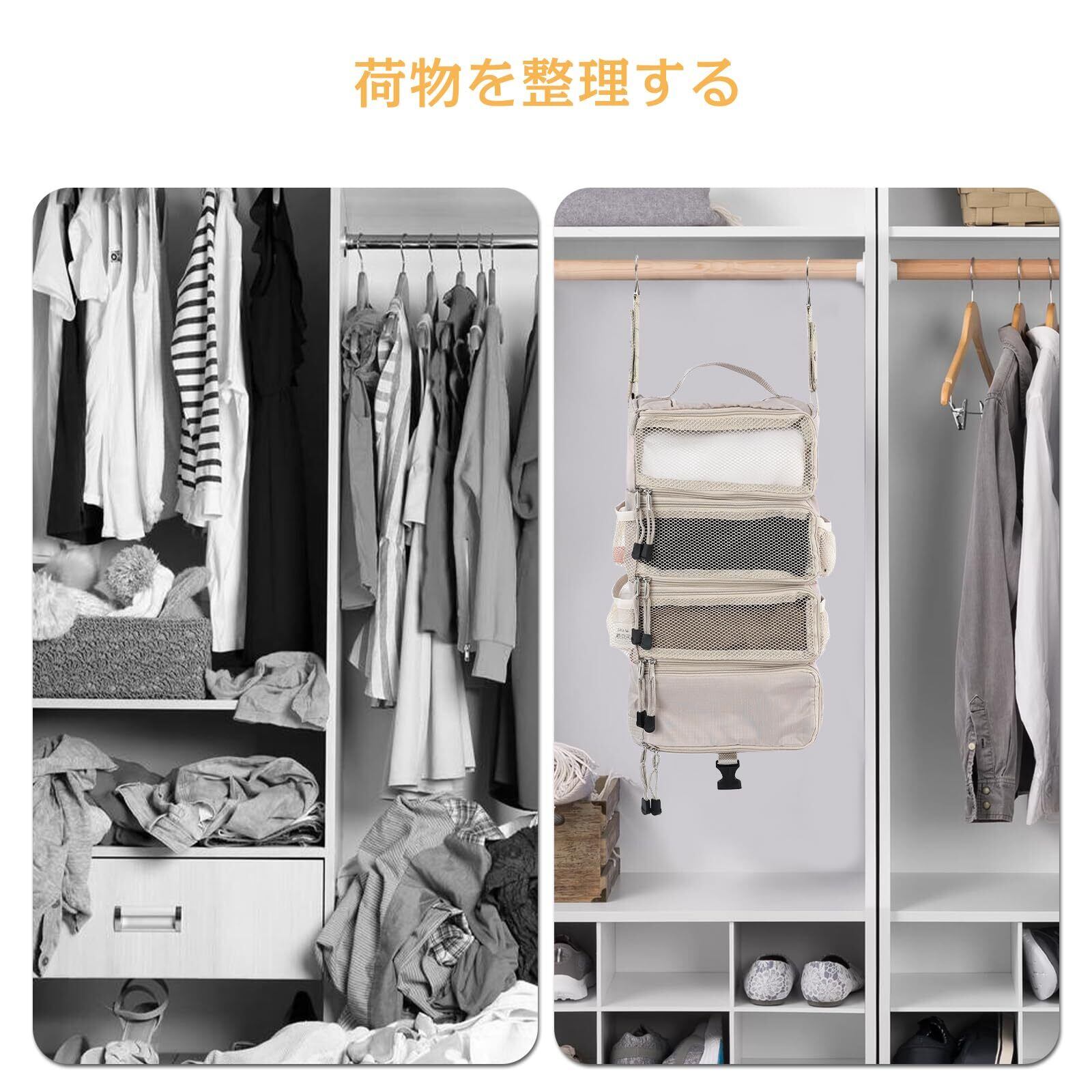 【吊下げタイプ】吊下げタイプなので、壁掛けが可能です。入ることはもちろん、取り出しも持ち運びにも便利です。通気性がいいし、中のものも一目瞭然で、時間を節約、頻繁に出張に行く身としては非常に便利です。