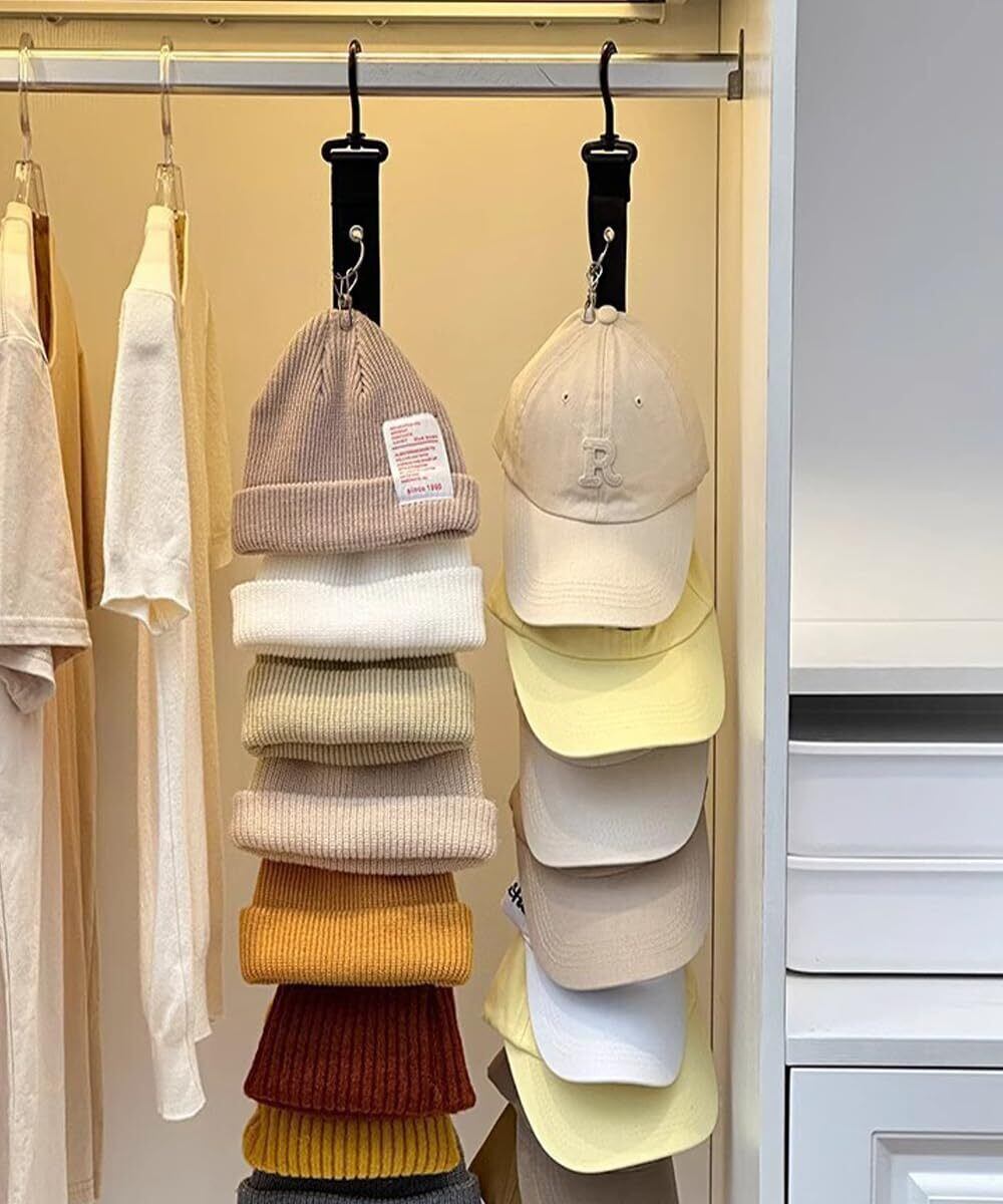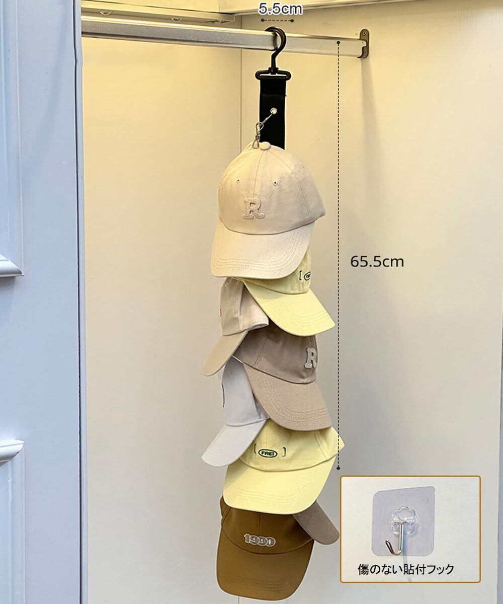 【8つのクリップ付き】8つの丈夫なクリップが付いており、各クリップで1つの帽子をしっかりと固定できます。最大8つの帽子を同時に収納可能で、キャップ、ベレー帽、ニット帽など様々な種類の帽子を整頓して保管できます。