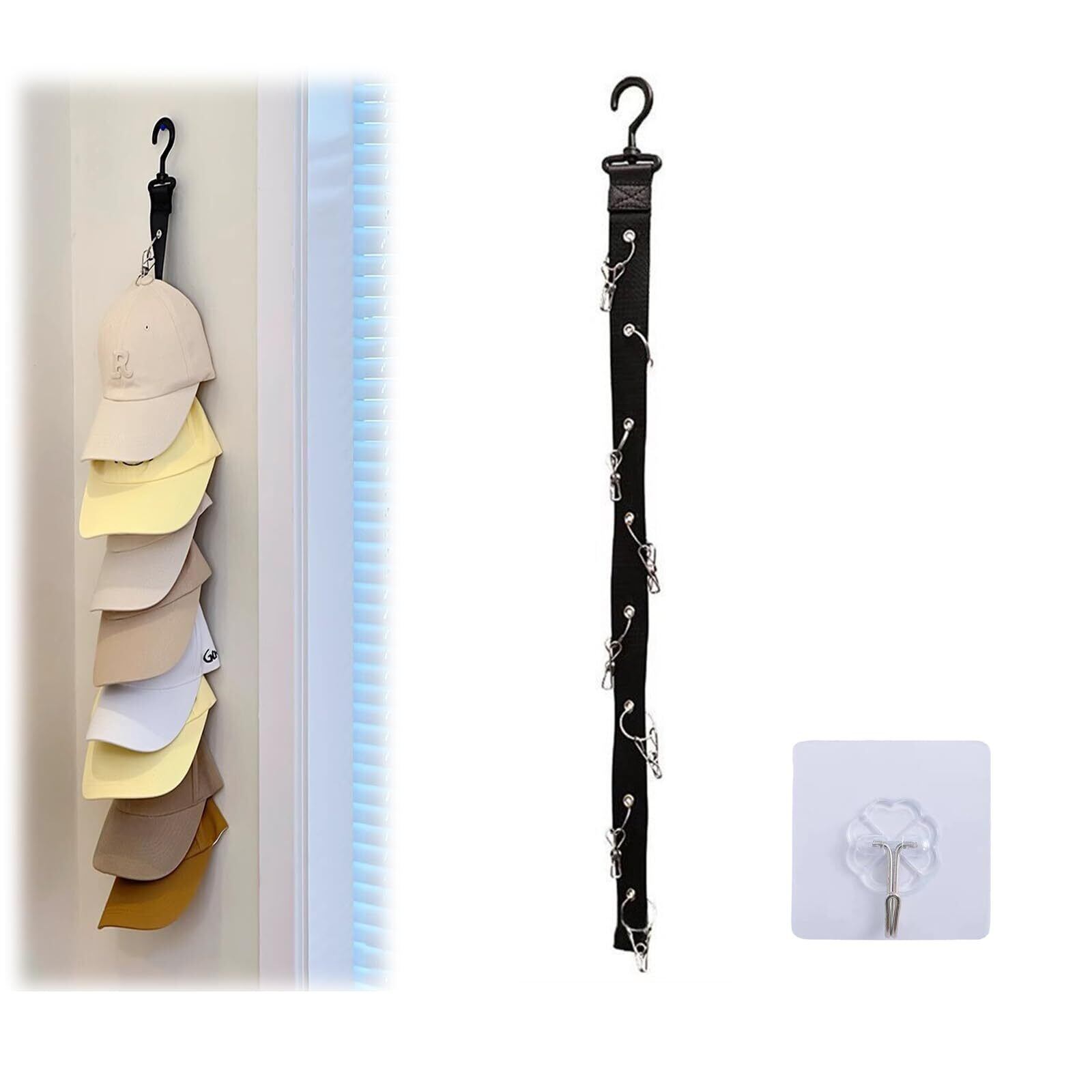 【在庫処分】帽子掛け ハンガー 帽子スタンド キャップラック 収納 ベルト 360°回転フック 吊り下げ 収納 保管 整理 スペースを節約します (ブラック, 1本)