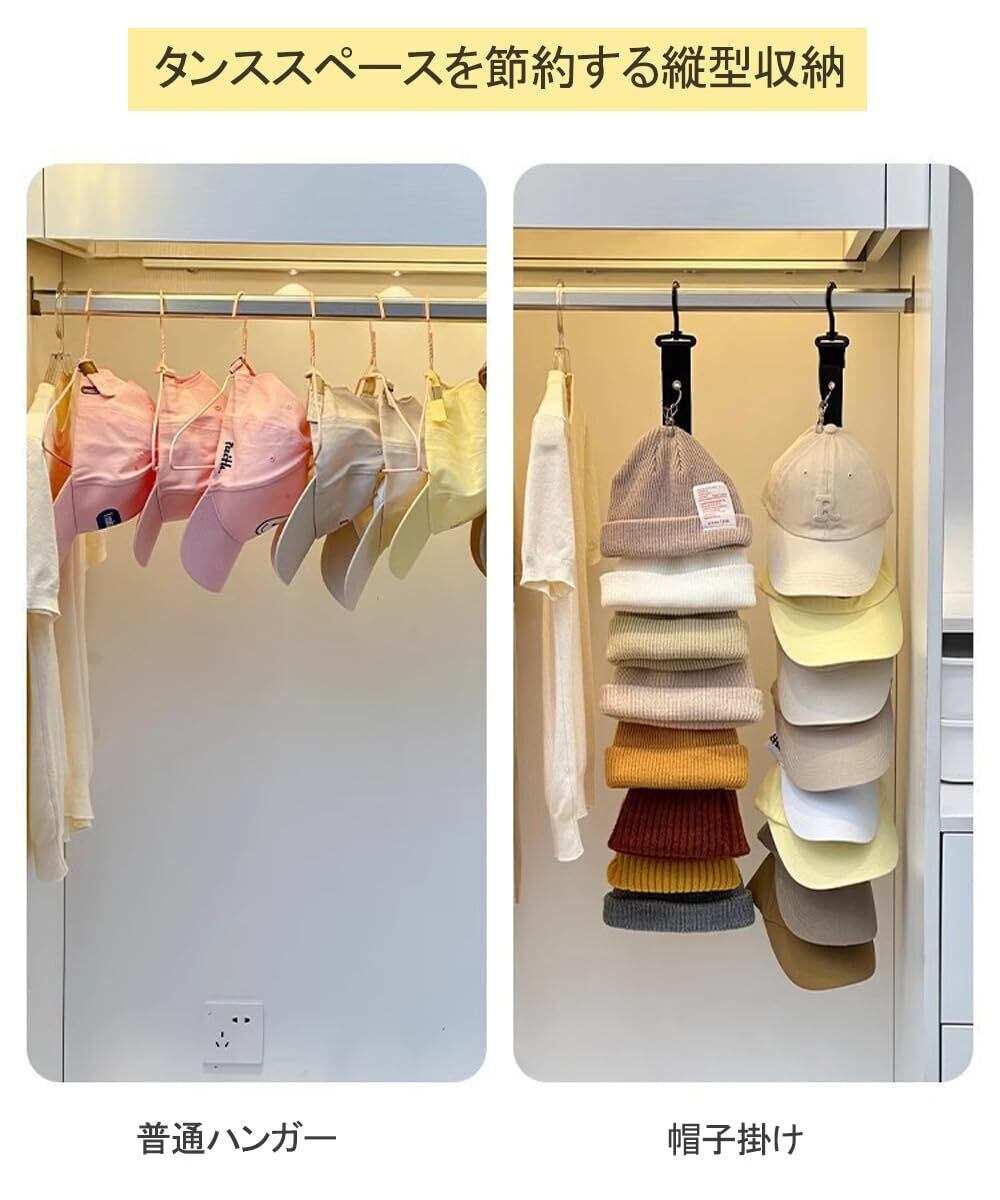 【丈夫で耐久性があり】高品質の素材を使用しており、クリップとフックには優れた耐荷重能力があります。帽子がしっかりと吊り下がり、簡単に落ちることはありません。長時間使用しても性能と外観を保ち続けます。