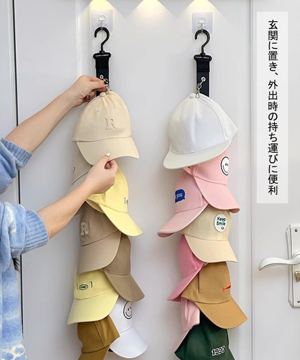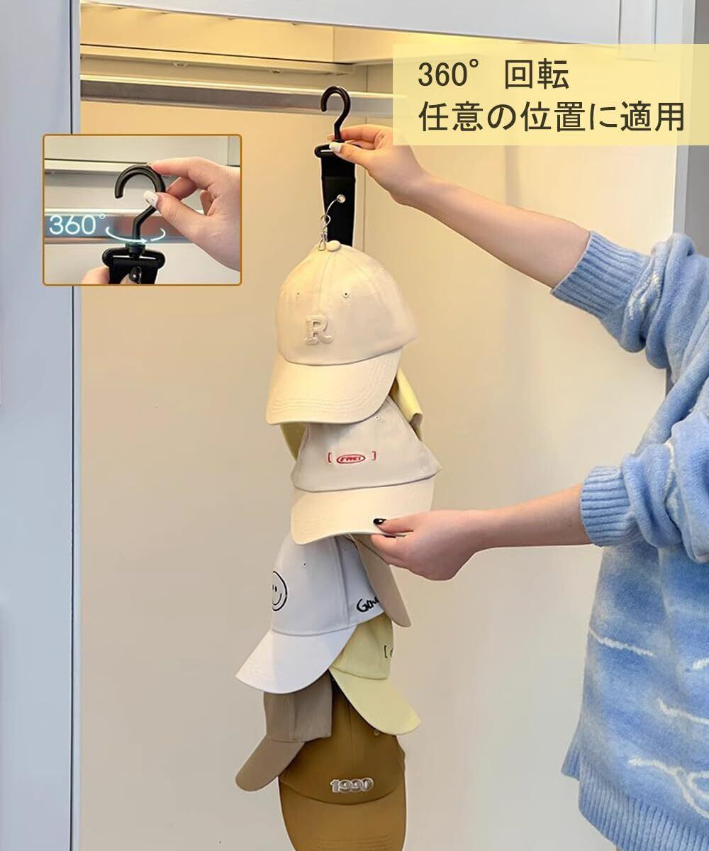 帽子掛け ハンガー 帽子スタンド キャップラック 収納 ベルト 360°回転フック 吊り下げ 収納 保管 整理 スペースを節約します (ブラック, 1本)