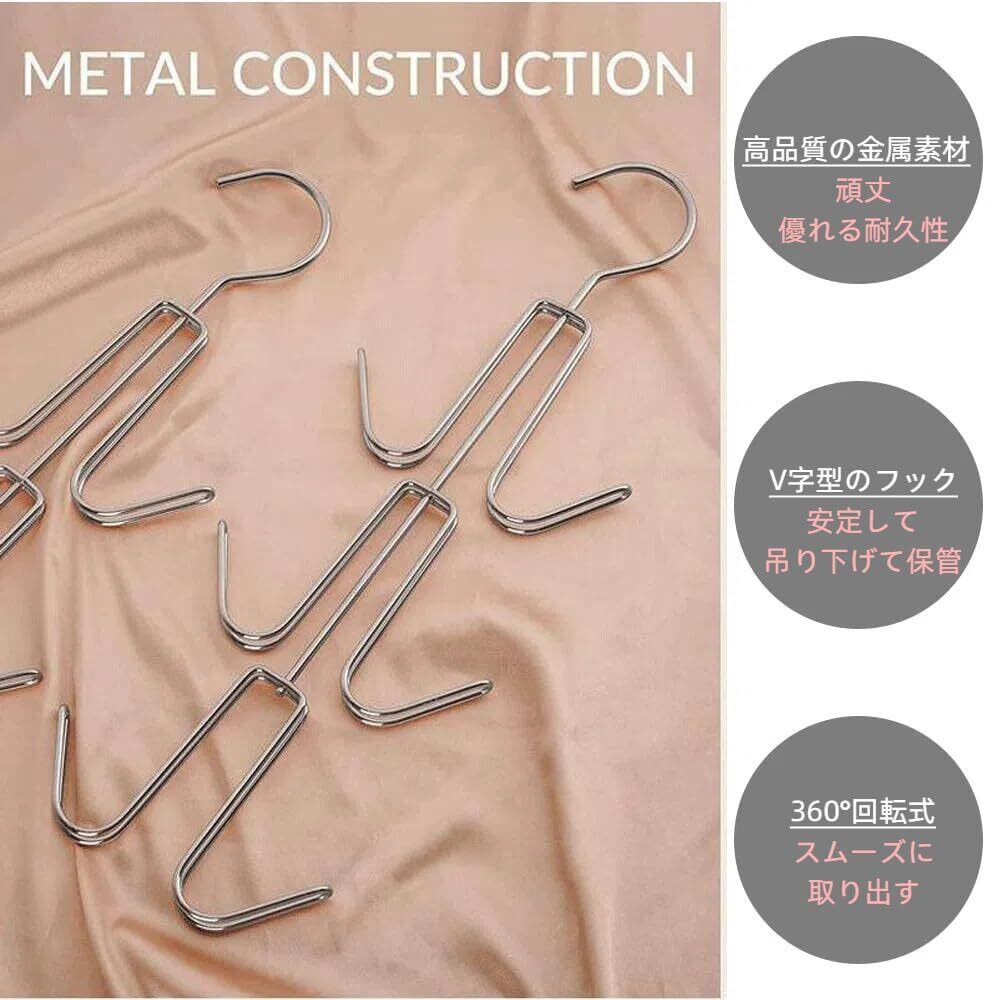 【耐久性のある素材】このバッグラックは、高品質の金属素材で作られており、頑丈で耐久性があります。長期間使用できる設計です。V字型のフックは、小物を傷つけることなく安定して吊り下げて保管できるため、非常に便利です。収納スペースを効率的に活用できるアイテムです。