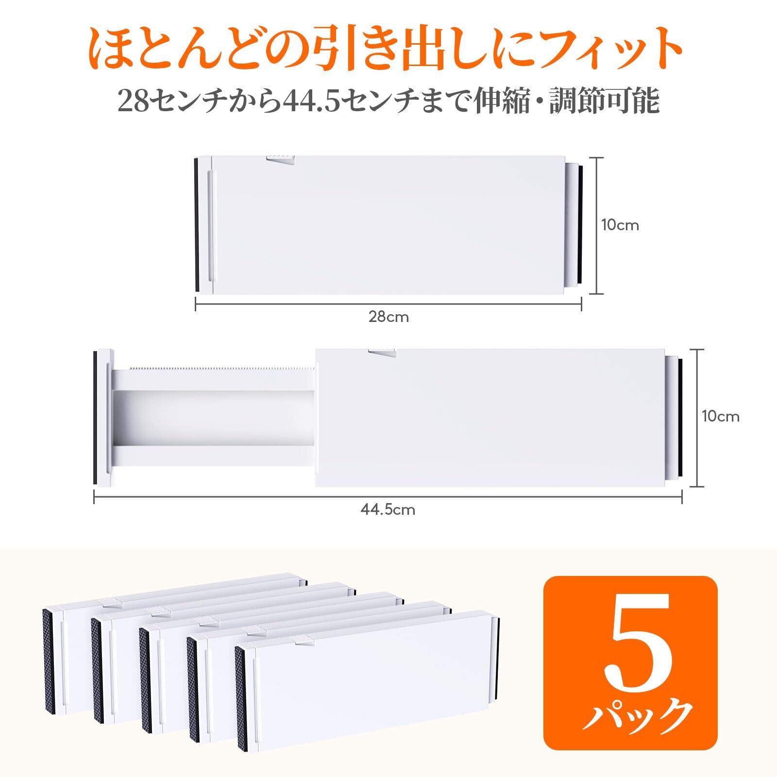 Lifewit 5個入 引き出し 仕切り りプラスチック製ドロワーデバイダー 10 cm 高さ、28-44.5 cm 衣類用調節可能なドロワーオーガナイザー、寝室/浴室/キッチン/オフィスの整理と収納の拡張可能なドレッサー用仕切り