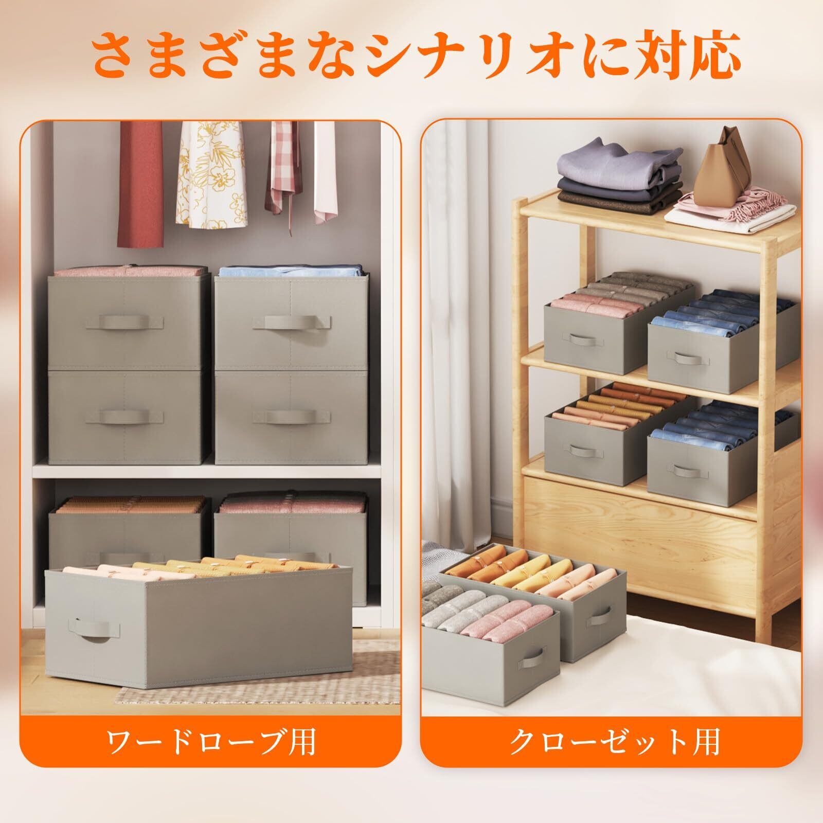 Lifewit ズボン 収納 ワードローブ 衣類オーガナイザー 4個パック 仕切りボックス 大型 幅27 奥行42 高さ17 cm サイズ 6グリッド クローゼット ジーンズ収納ボックス ハンドルとサポートボード付き 折りたたみ式引き出し仕切り セーター、ズボン収納、Tシャツ、パーカー、ドレス用 グレー
