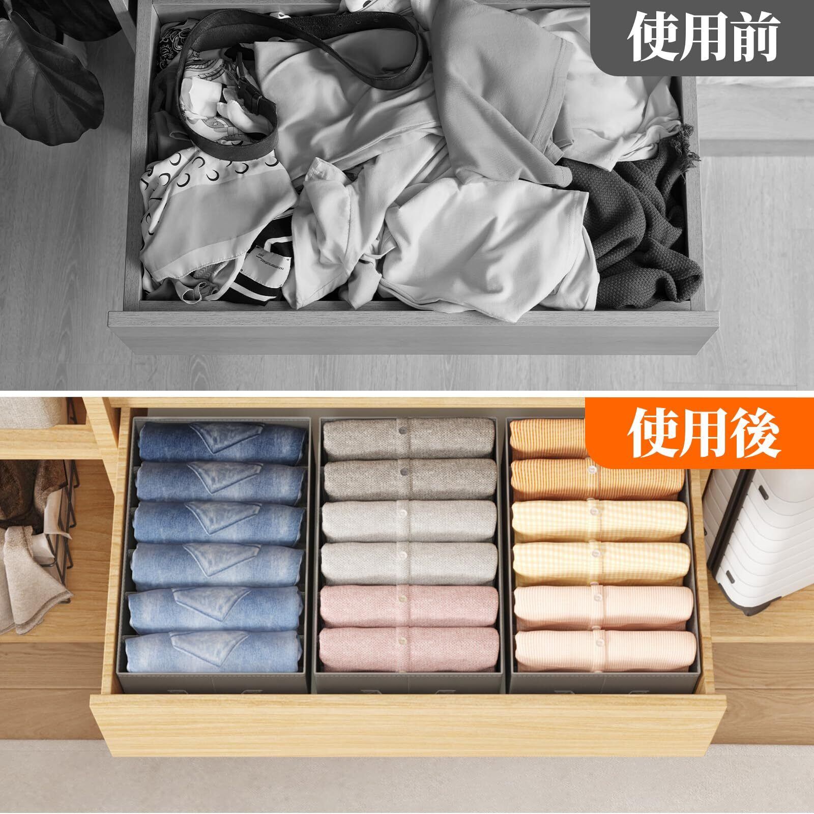 大容量:クローゼット用収納ケースのサイズは42x27x17cm。収納スペースが6個あり、十分な収納容量です。各収納スペースは幅7cmと広く、ズボン、ジーンズ、Tシャツ、セーター、タオル、レギンスなどをシームレスに整理・分類できます。