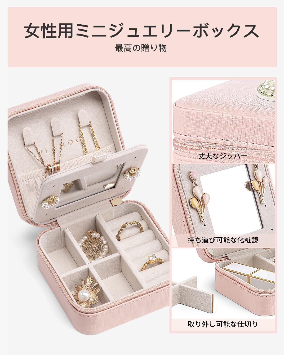 【新着商品】Vlando 誕生日プレゼント女性 ジュエリーボックス 名前入り プレゼント 携帯用 鏡付き ジュエリーボックス トラベル 結婚祝い プレゼント 記念日 バレンタイン 退職 祝い 贈り物(ピンクA)
