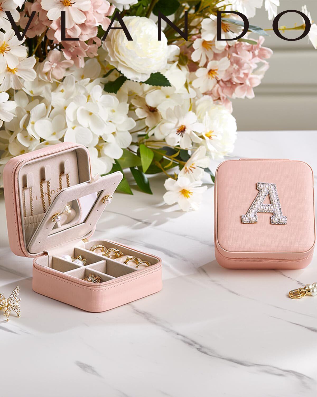 Vlando 誕生日プレゼント女性 ジュエリーボックス 名前入り プレゼント 携帯用 鏡付き ジュエリーボックス トラベル 結婚祝い プレゼント 記念日 バレンタイン 退職 祝い 贈り物(ピンクA)