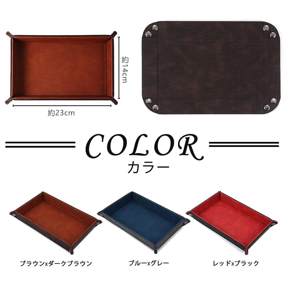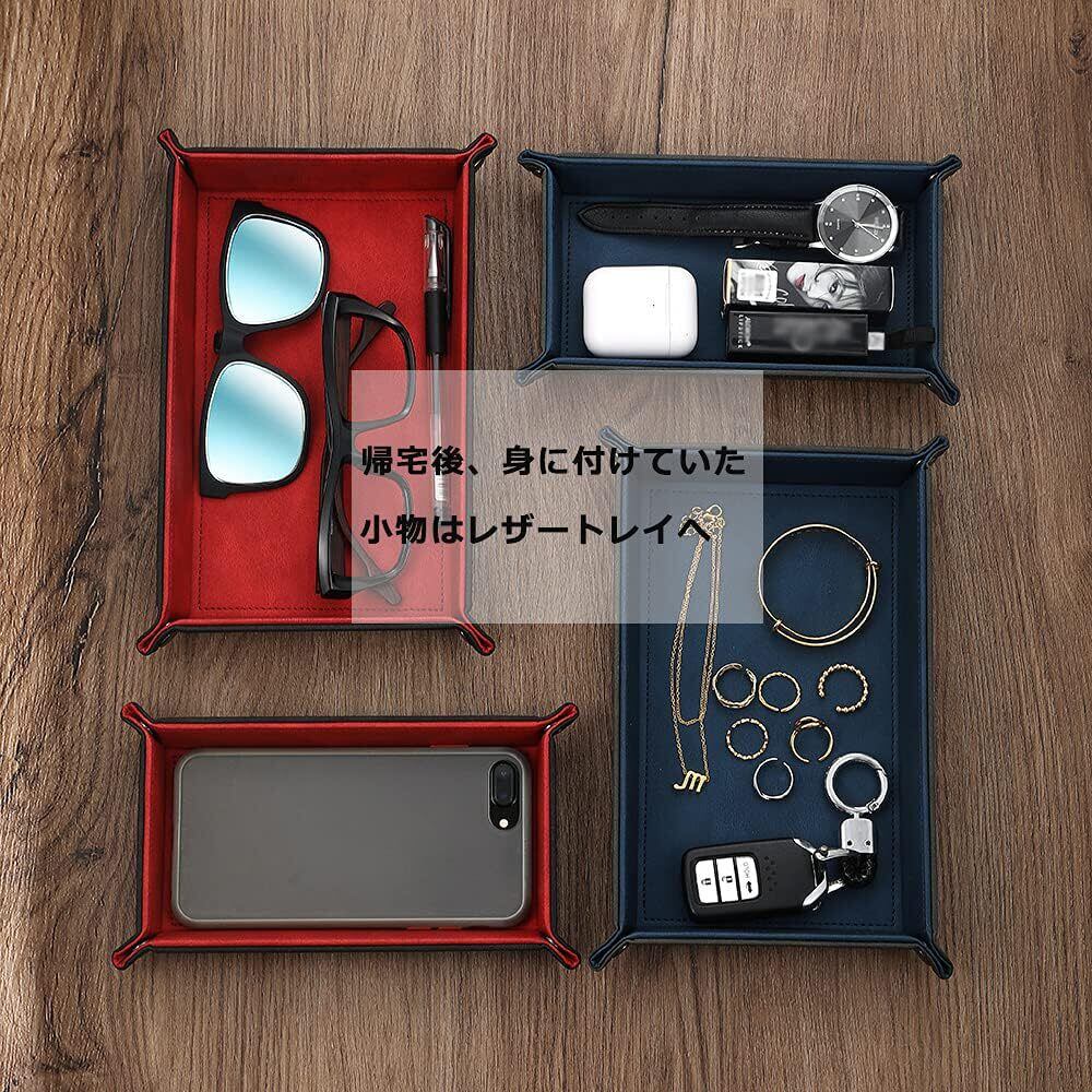 【新春セール】レザートレイ 小物入れ アクセサリートレイ 小物トレー 折り畳み式 こものいれ ボックス 腕時計 鍵 スマホ メガネ アクセサリー リモコン 収納ボックス おしゃれ 携帯便利 Mサイズ (グレー×ブルー)