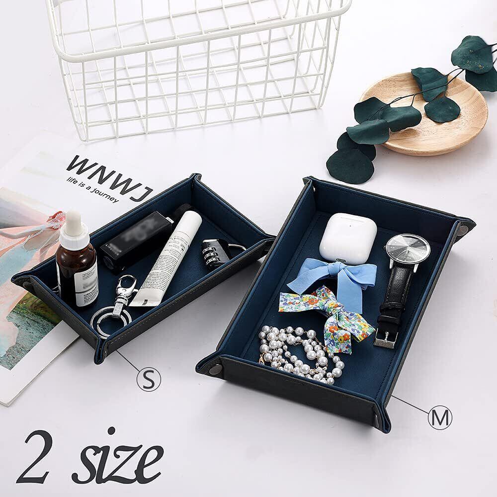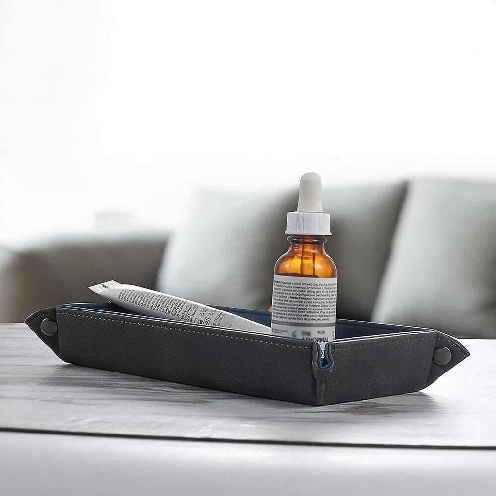 レザートレイ 小物入れ アクセサリートレイ 小物トレー 折り畳み式 こものいれ ボックス 腕時計 鍵 スマホ メガネ アクセサリー リモコン 収納ボックス おしゃれ 携帯便利 Mサイズ (グレー×ブルー)