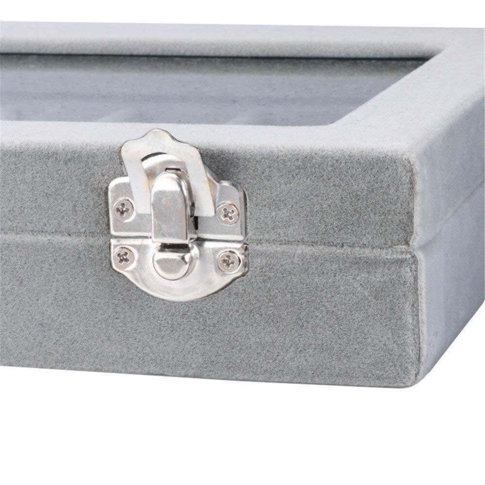 【2022最新】24区画 アクセサリーボックス ベルベット調 ジュエリーケース 耳飾り ピアス 指輪 ディスプレイ収納ケース (グレイ)
