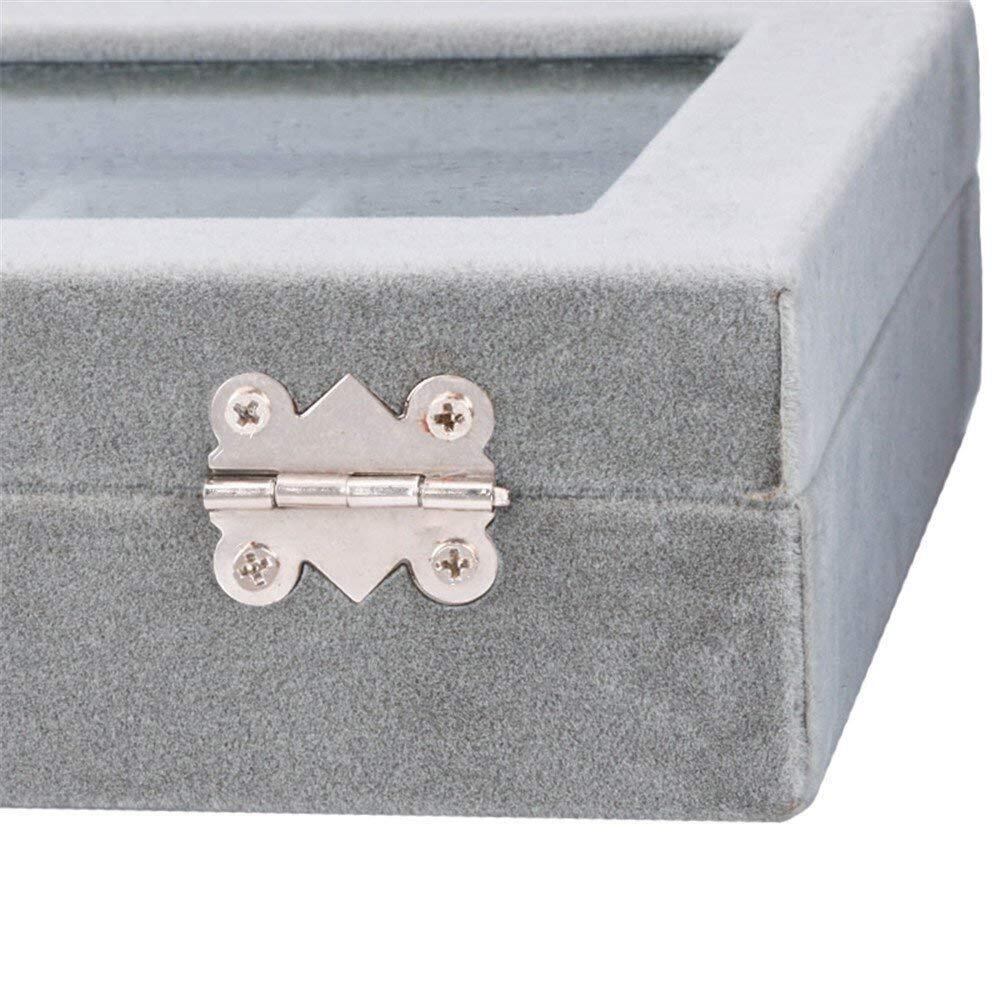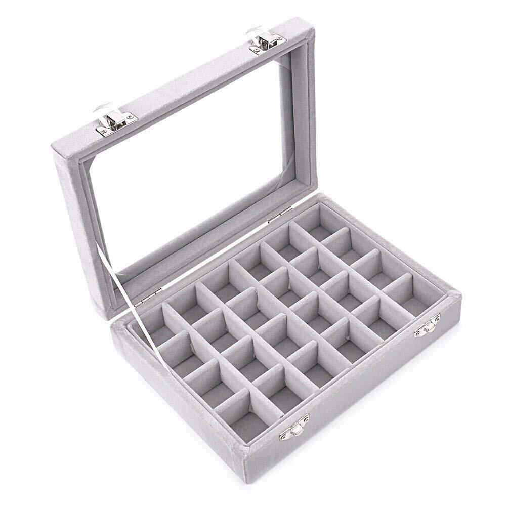 24区画 アクセサリーボックス ベルベット調 ジュエリーケース 耳飾り ピアス 指輪 ディスプレイ収納ケース (グレイ)