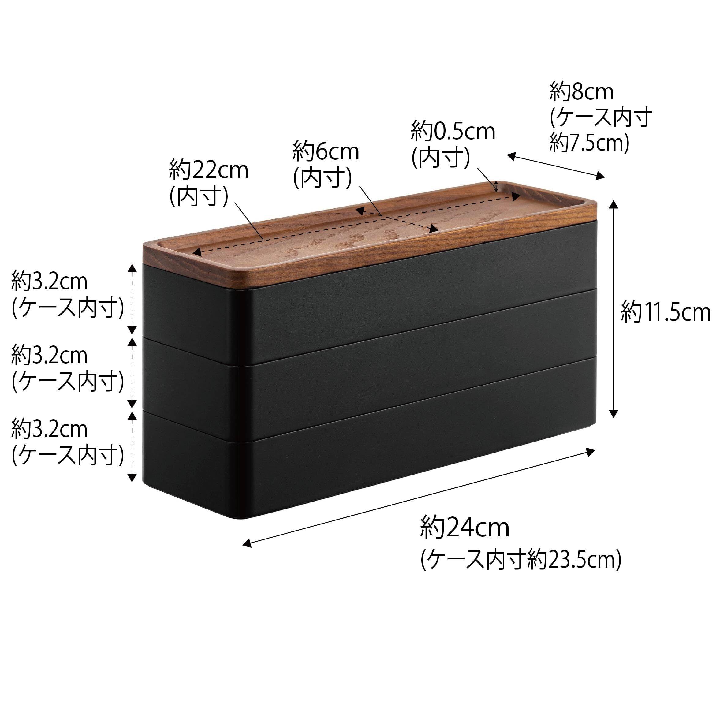 内寸サイズ:ケース/約W23.5×D7.5×H3.2cm,木蓋トレー部/約W22×D6×H0.5cm