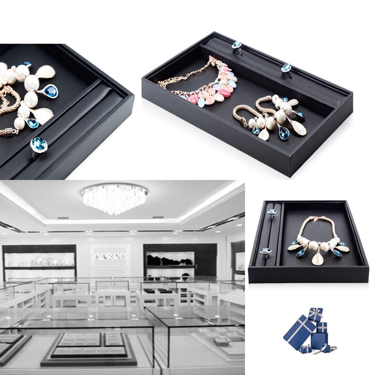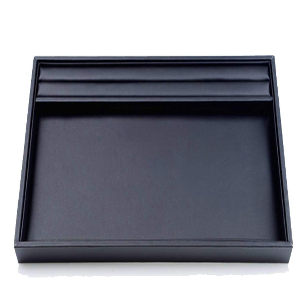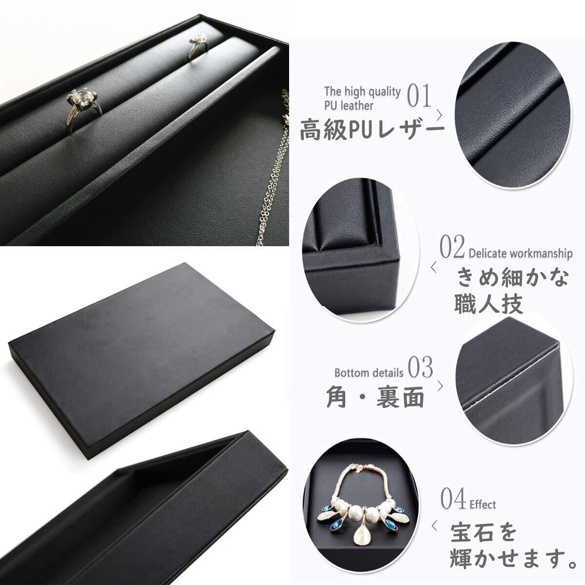 S.fields.inc リング溝付き ジュエリートレイ アクセサリートレー 業務用 接客トレイ ジュエリーケース 収納 プロ仕様 ジュエリーボックス (ブラック,PUレザー)