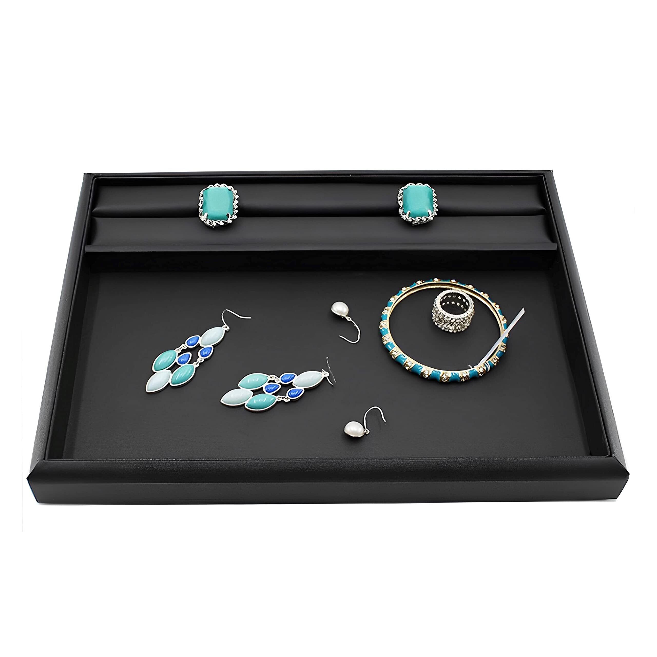 East Leaf ジュエリートレイ アクセサリートレイ リング溝付き トレー 業務用 30x22x3cm (黒 PUレザー)