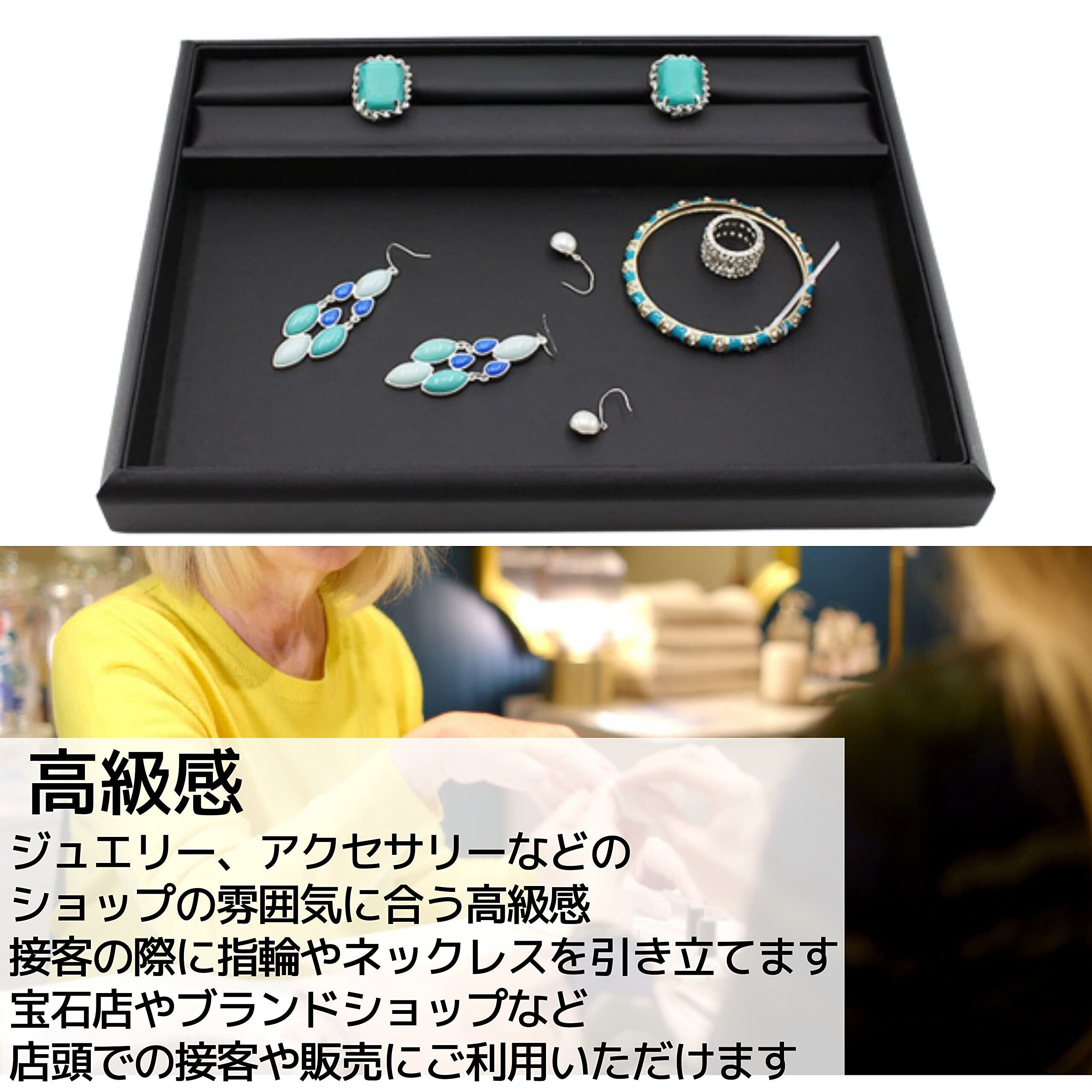 【主な用途】上品な雰囲気。展示会や店舗ディスプレイ、お客様にお見せするトレイとして。また、ご自宅でもアクセサリーや腕時計置き、鏡台のまわりの整理整頓、引き出しの仕切りなど色々とお使い頂ける便利なトレイです。 美容室やサロンなどのお店で、お客様からお預かりするネックレス、ピアス、イヤリングなどのアクセサリーや腕時計やメガネなどの保管にも重宝します。