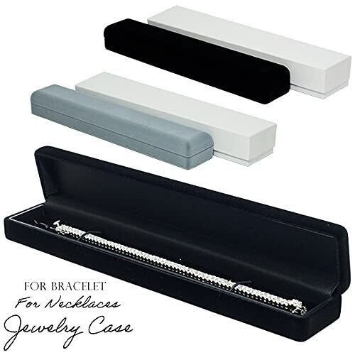 【新着商品】ジュエリーケース ネックレス用 ブレスレット用 共用 ペンダント ネックレス ブレス ケース ギフト プレゼント アクセサリー 収納 外化粧箱付き (ブラック)