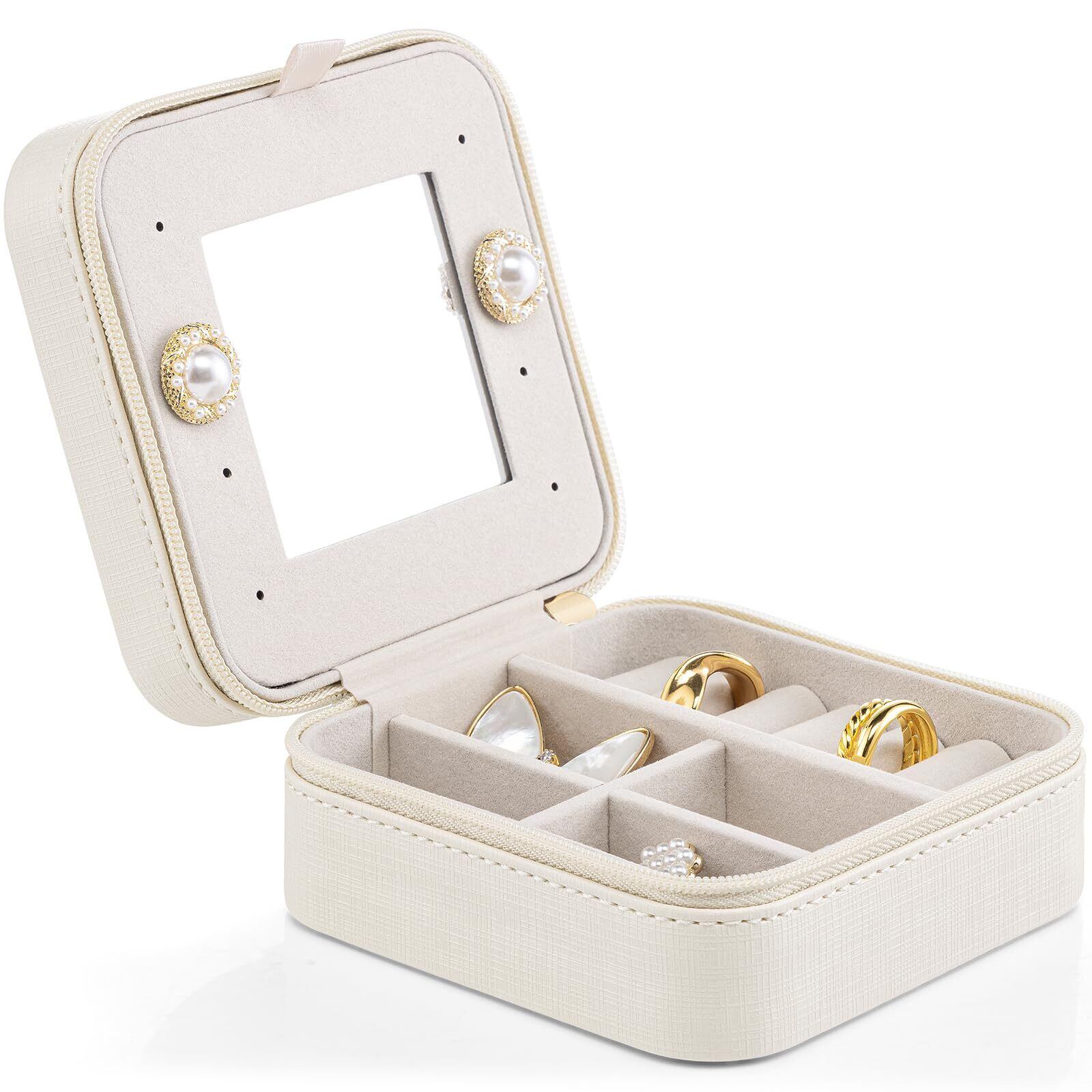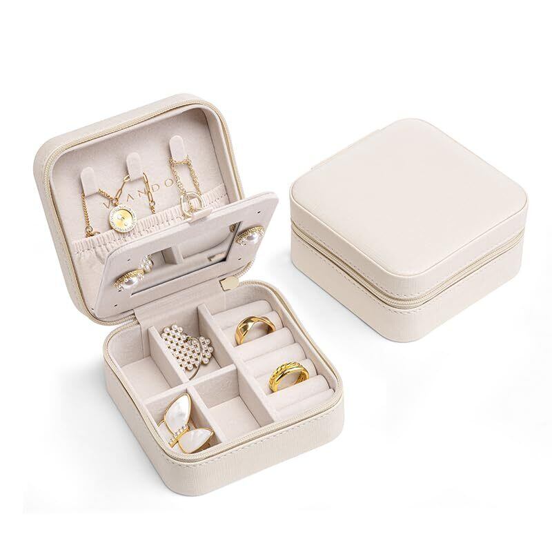 Vlando 誕生日プレゼント女性 ジュエリーボックス プレゼント 携帯用 ジュエリーボックス トラベル 結婚祝い プレゼント 記念日 バレンタイン 退職 祝い 贈り物 - ホワイト