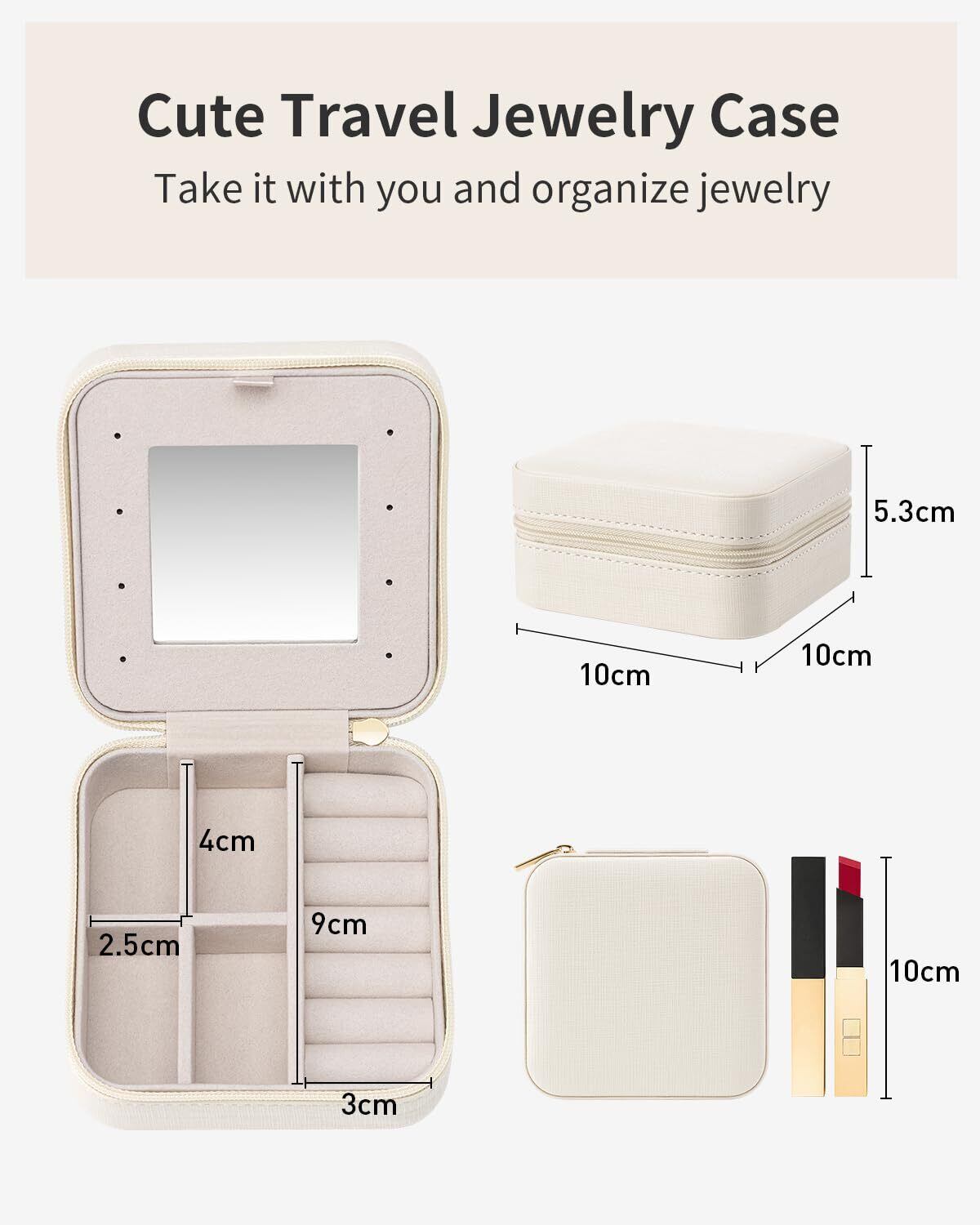 【ミニサイズ】 10×10×5cmのサイズで、旅行用ジュエリーケースは持ち運びがしやすく、軽量で、手提げバッグや荷物に簡単に入れることができます。