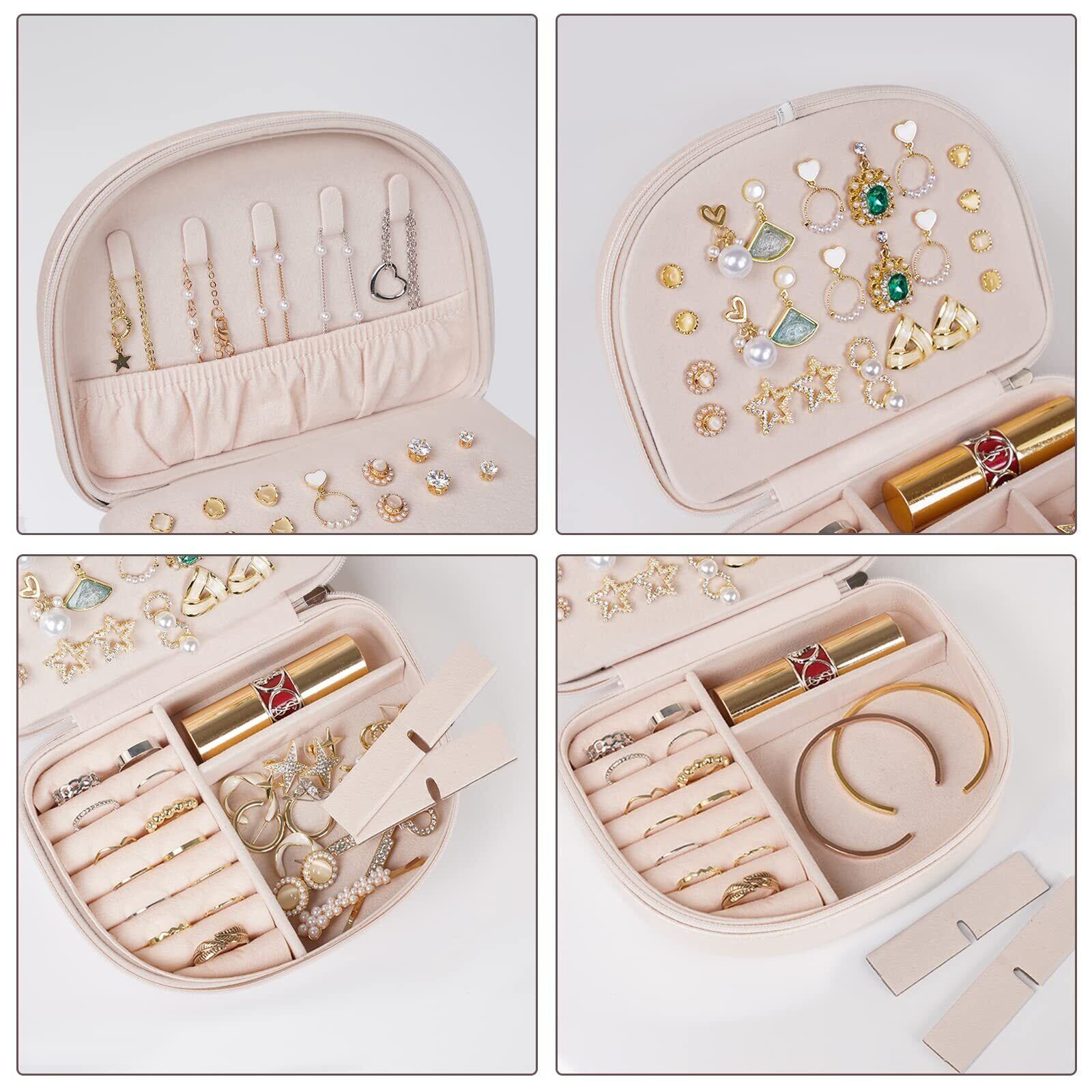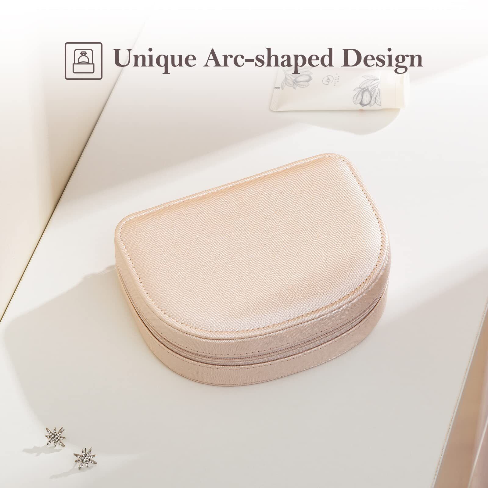 ProCase 小さなジュエリーボックス 半円形 小型宝石箱 旅行・出張用 女性 アクセサリ ジュエリー収納 シャンパン・Mサイズ