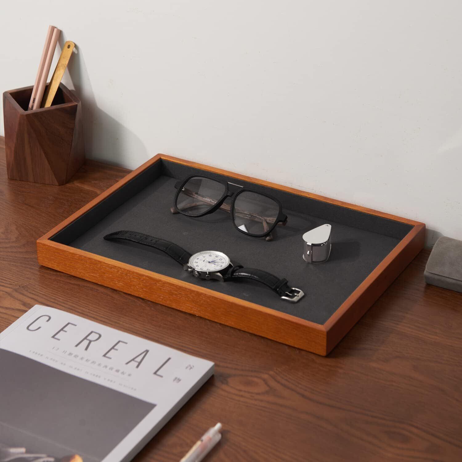 【特価セール】Oirlv ジュエリートレイ 木製 大きい フラットトレイ 時計 指輪 ネックレス 収納 展示用 高級 おしゃれ 適格請求書に対応 P04902 (ダークグレー)