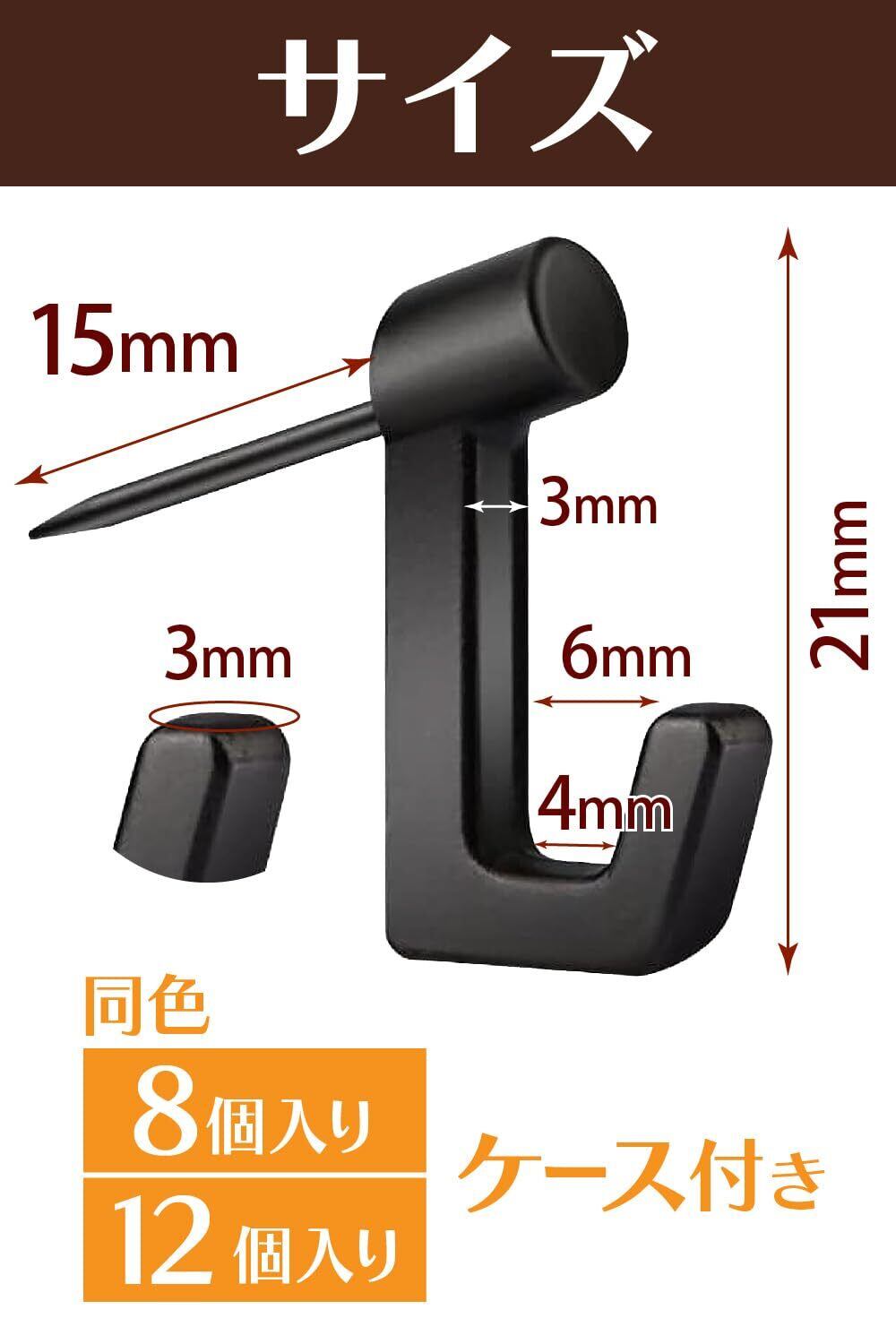 【取り付け方法】 石膏ボード壁なら指で押すだけでOK。斜めに刺さる設計により、しっかりと固定されます。針の長さ15mmで、壁にしっかりと固定できるため安心です。工具不要で簡単に取り付けられ、取り外しも容易。コンパクトながら機能的な設計です。