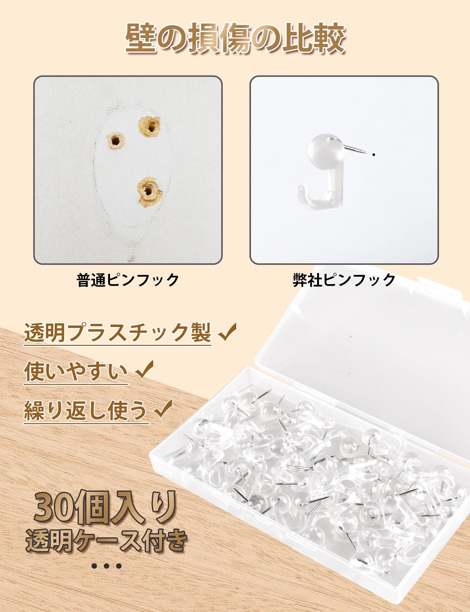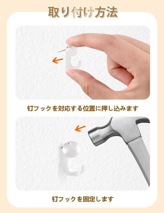 【デザイン&材質】ピンフックは斜めに刺さるデザインなので、工具を使わずに固定できます。物を壁に安定して固定し、簡単に落ちません。钉フックは高品質の透明プラスチック製です。 耐久性・耐食性に優れ、劣化を防ぎます。 長く繰り返し使えます。