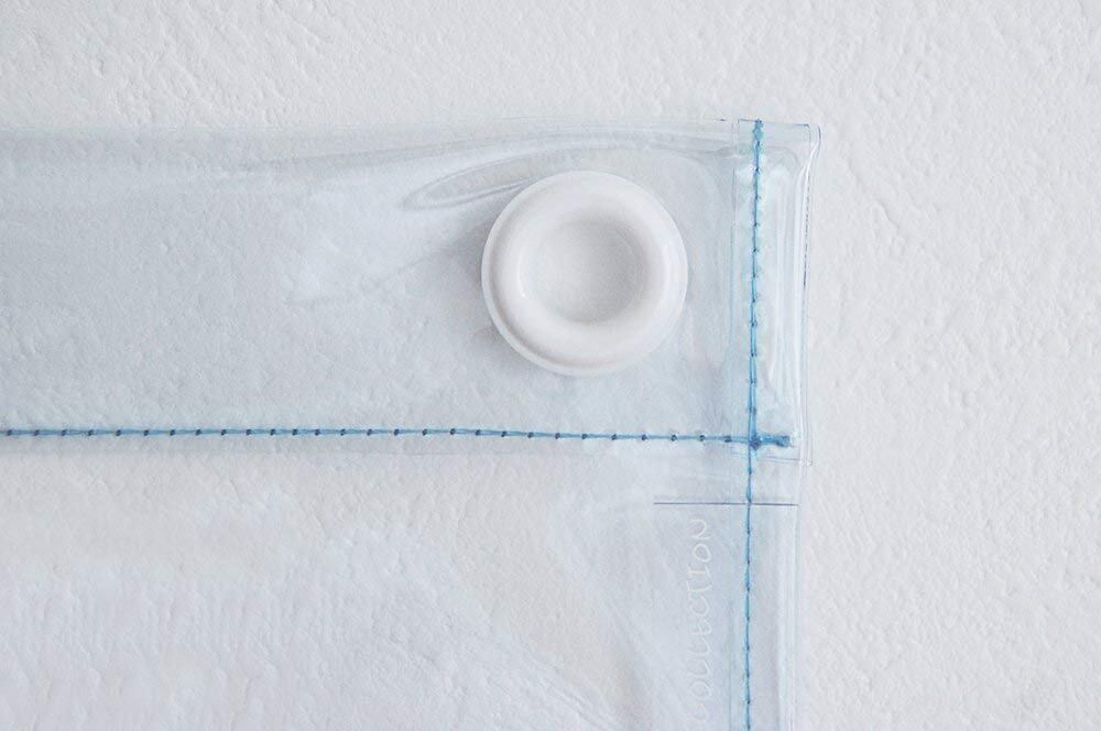 ●アクセントにホワイトのハトメと水色の糸を使用