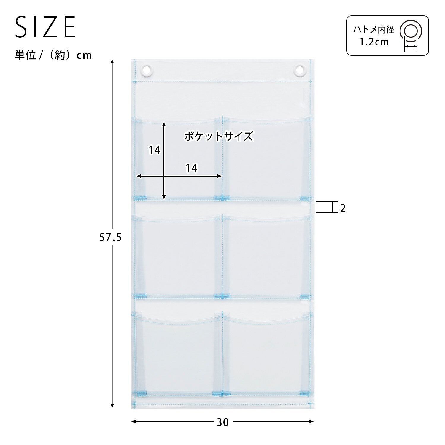 [サイズ]<br>本体:W30xH57.5cm<br>ポケット:W14xH14cm(ポケットマチ3cm)