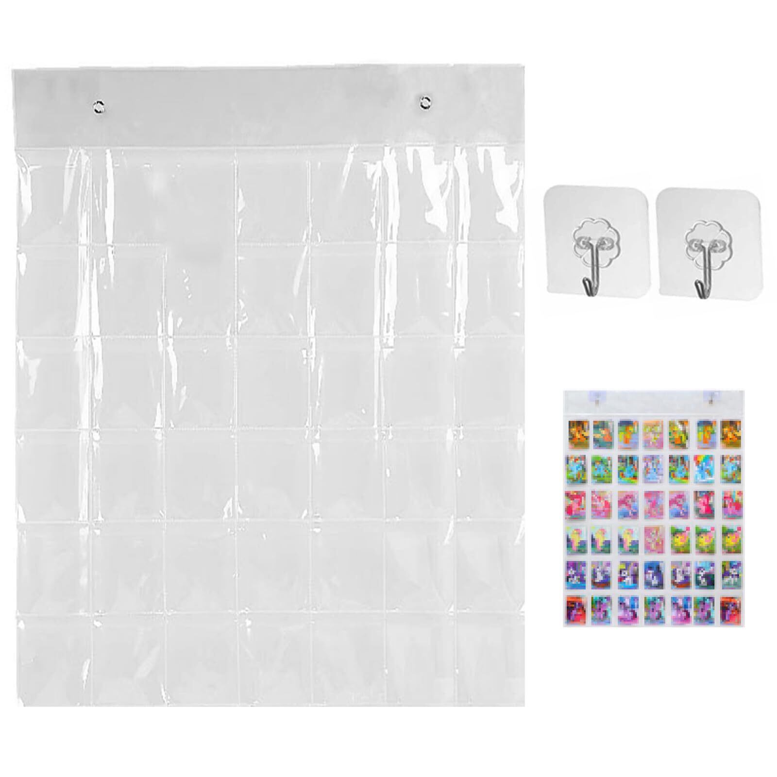 PAVIKE カードホルダー 壁掛け (42ポケット) 写真展示用ホルダー ポストカード 収納 壁掛式 ウォールポケット 42枚のカードを収納可能鑑賞 透明 カードの保護 傷防止 吊り下げ 大容量 省スペース 10.5cm*8cm以内に対応 フック付き