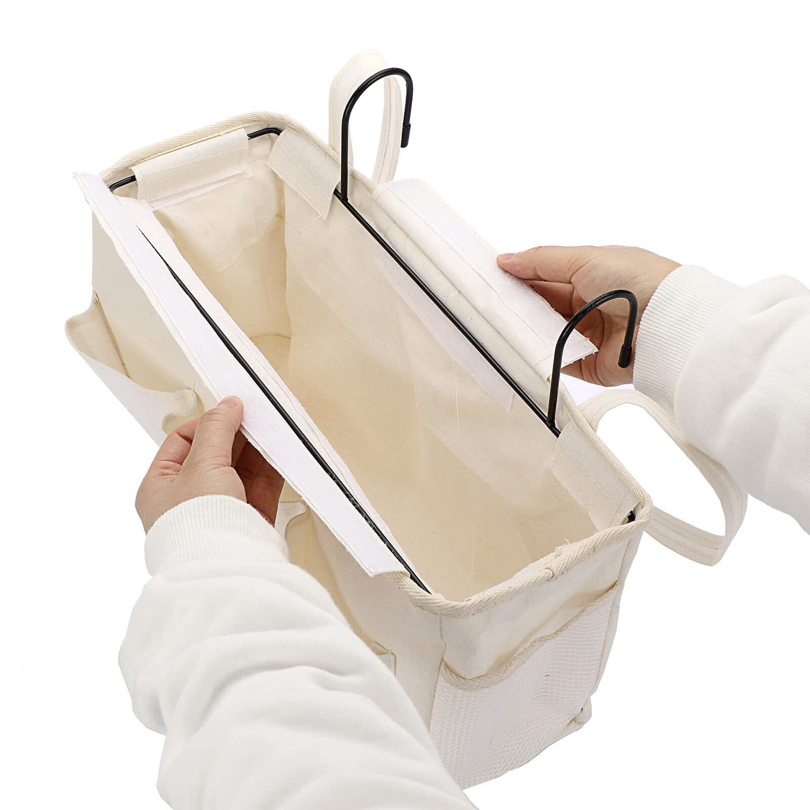 Sumnacon ベッドサイド収納ポケット 大容量 多機能収納かご 吊り下げ収納袋 掛け袋 小物収納ボックス 収納かご 雑貨収納 雑誌ブック マルチポケットオーガナイザー 防水素材収納袋 ベルクロ 学生寮 家庭 車用 マルチポケット マジックテープフック 鉄製フック(ベージュ)