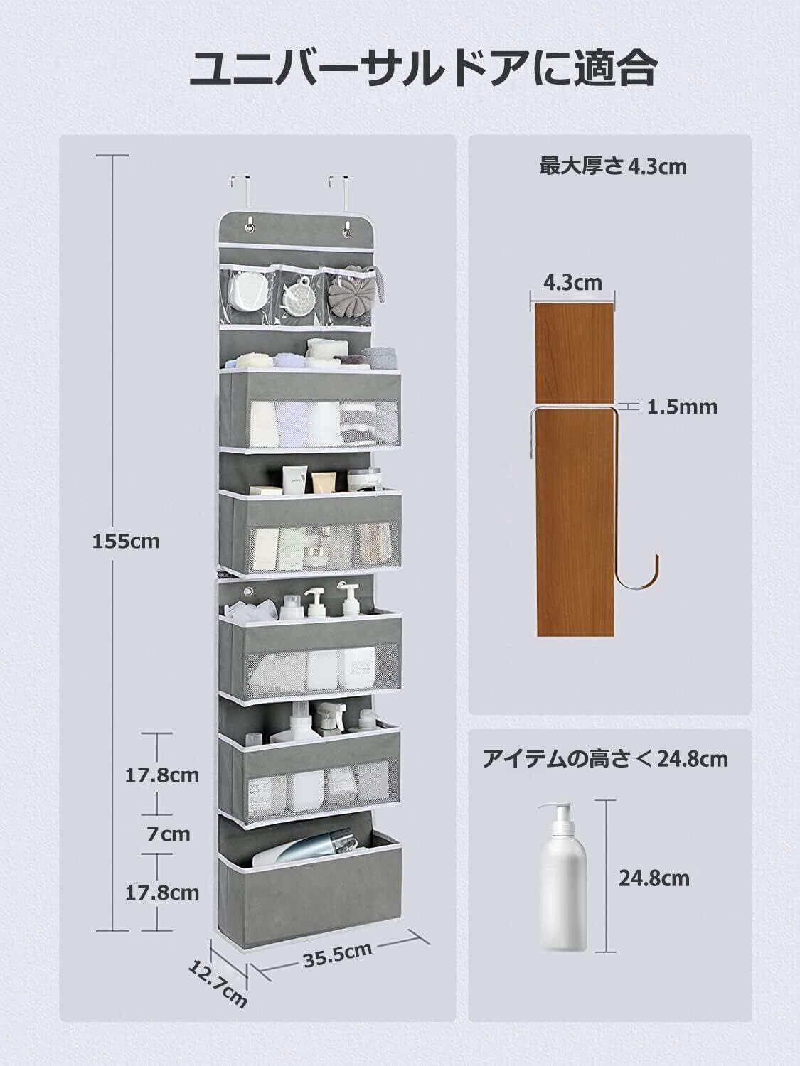 【様々な利用シーン】ドア掛け収納は玄関、寝室、子供部屋、脱衣場、洗面所、トイレなどだけでなく、幼稚園、保育園、オフィス、教室などにもご利用いただけます。おむつ/ベビー服/タオル/ドライヤー/入浴剤/化粧品/おもちゃ/雑誌/文房具/手芸用品などの小物の収納に便利です。