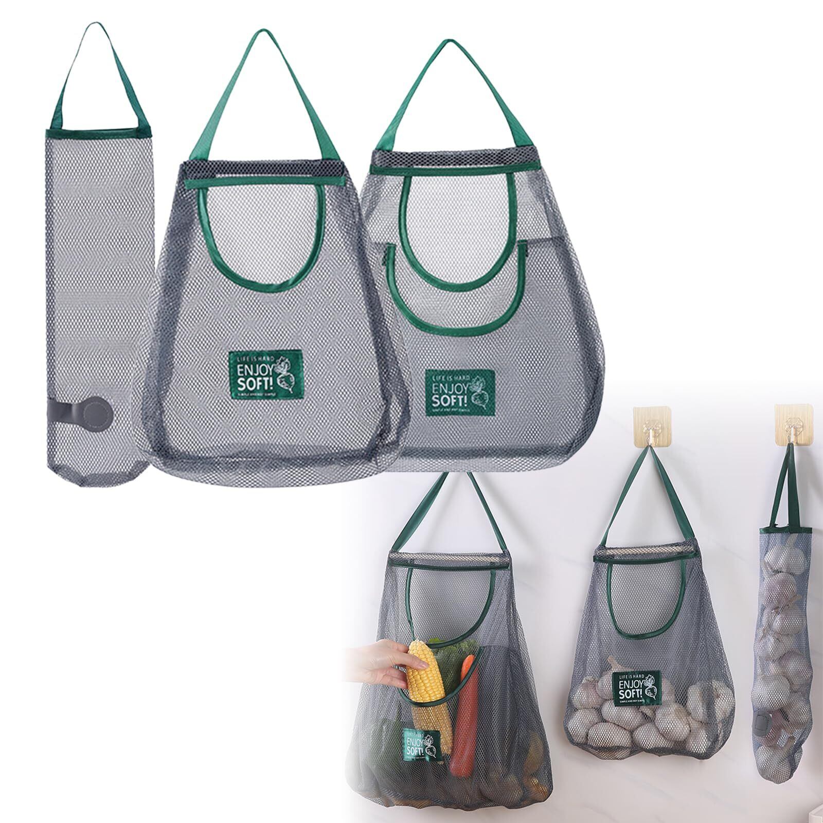 野菜 吊り下げ 3個入り レジ袋ストッカー 玉ねぎ メッシュ 袋 果物収納袋 壁掛けレジ袋 通気性 玉ねぎ 保存ネット 再利用可能 レジ袋収納 野菜用 ニンニク 吊り下げ 袋 ゴミ袋収納 壁掛け 果物収納袋 ビニール袋 収納