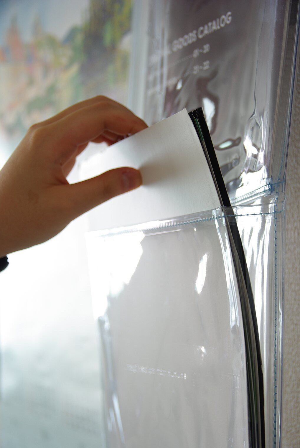 素材・材質:台布・ポケット=クリアービニール、ハトメ=プラスチック