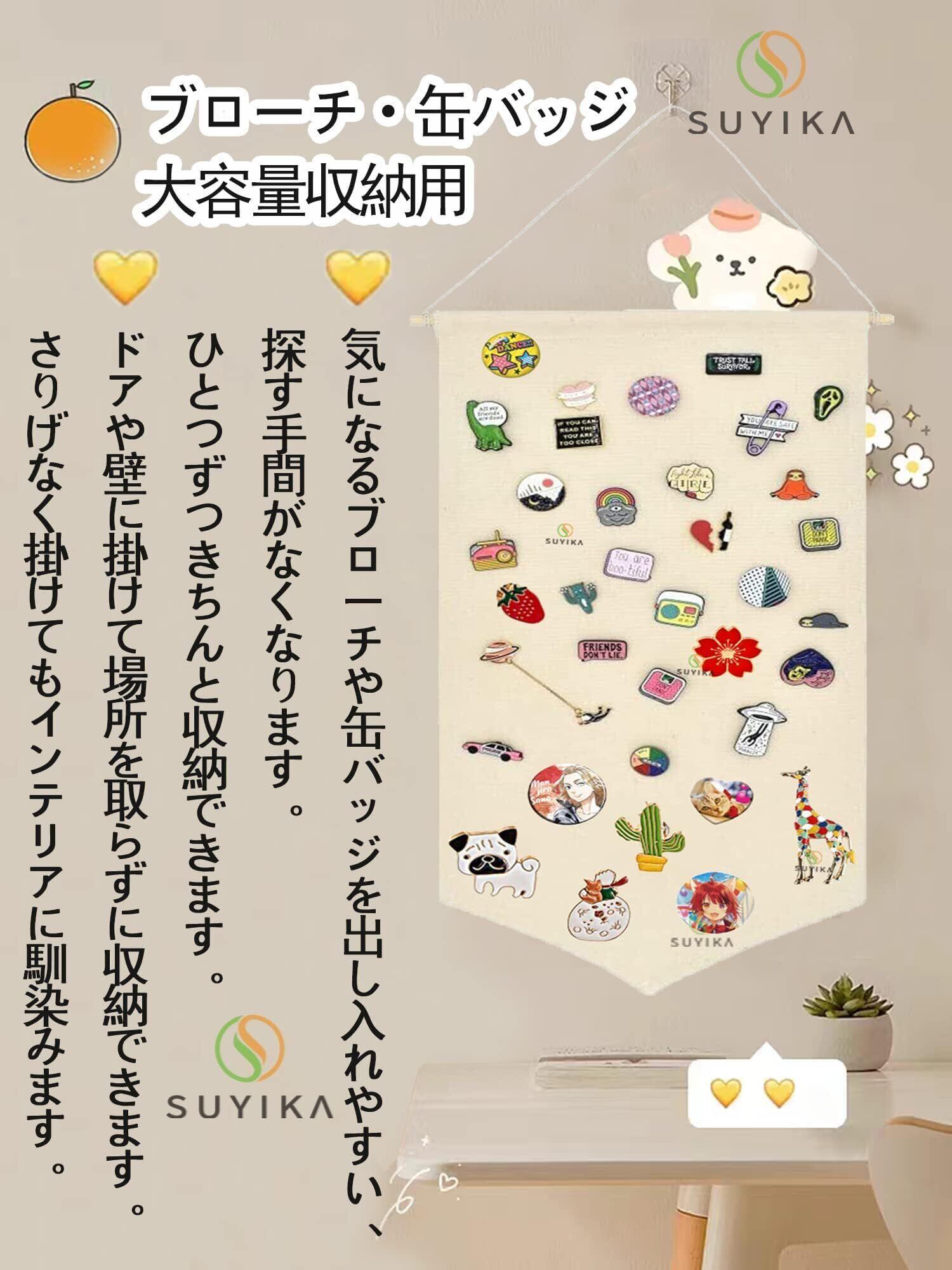 Suyikaブローチ・缶バッジ収納用 ウォールポケット 大容量 吊り下げ式 省スペース ブローチ・缶バッジディスプレイ ピンウォールディスプレイ DIY収納 ウォール飾り 小物収納