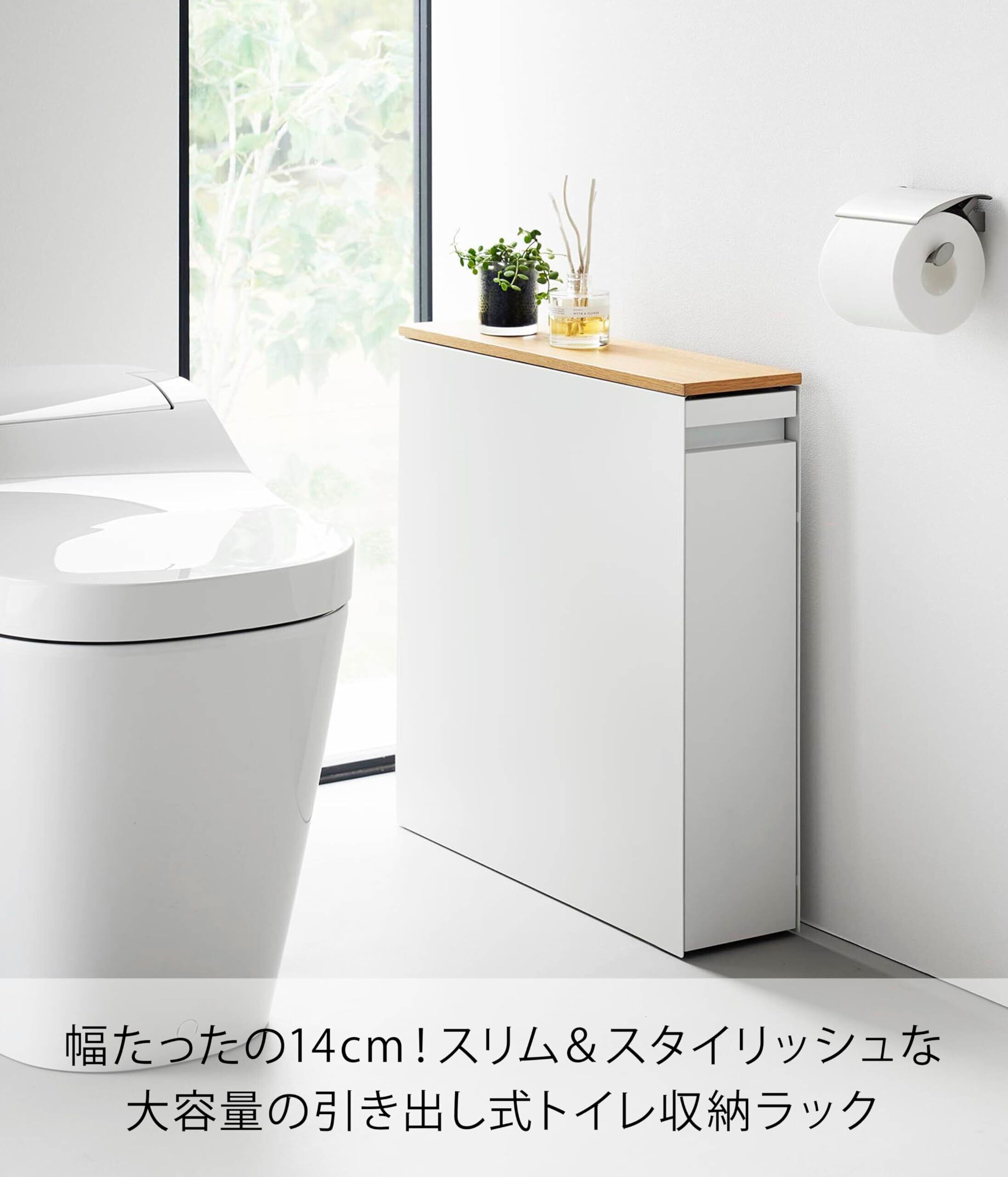 スリムで大容量の引き出し式トイレ収納ラック。